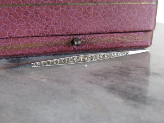 Antique Art Deco 18K Gold Bar Brooch with Rose Cut Diamonds c. 1925