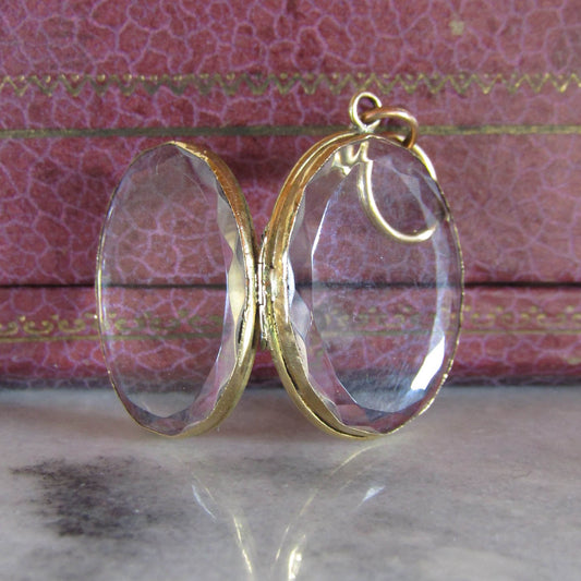 Antique 18K Gold Rock Crystal Shaker Locket, French Napoleon III Pendant