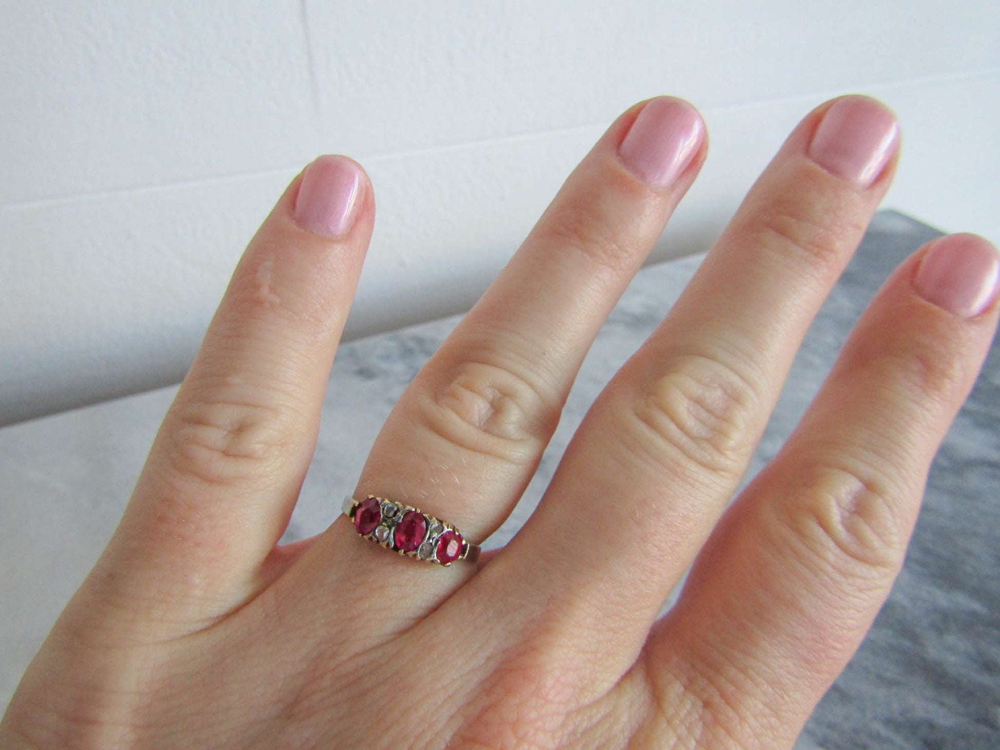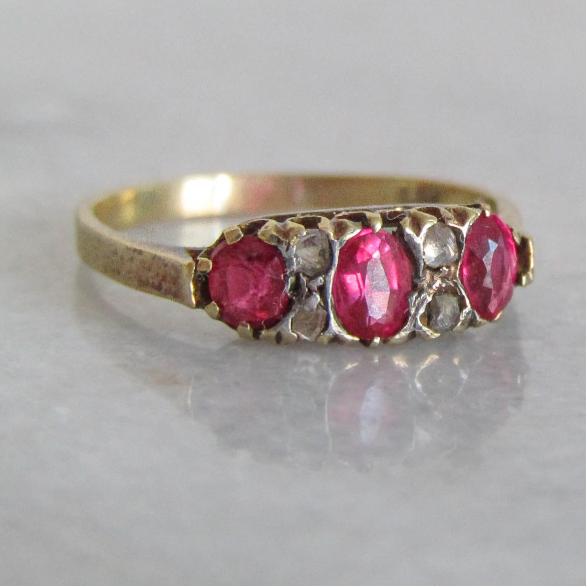 18K Victorian Ruby and Diamond ring, Antique Belle Epoque French Trilogy ring c. 1900