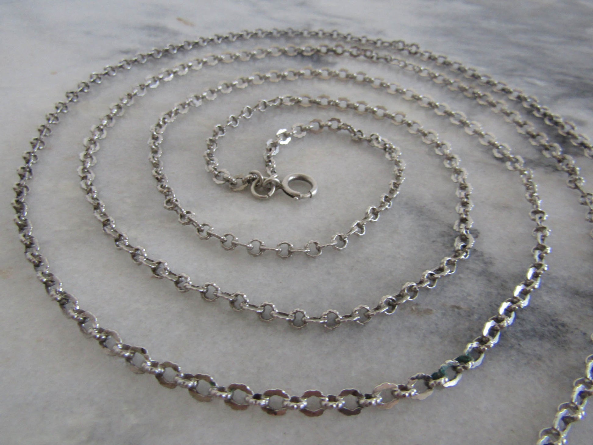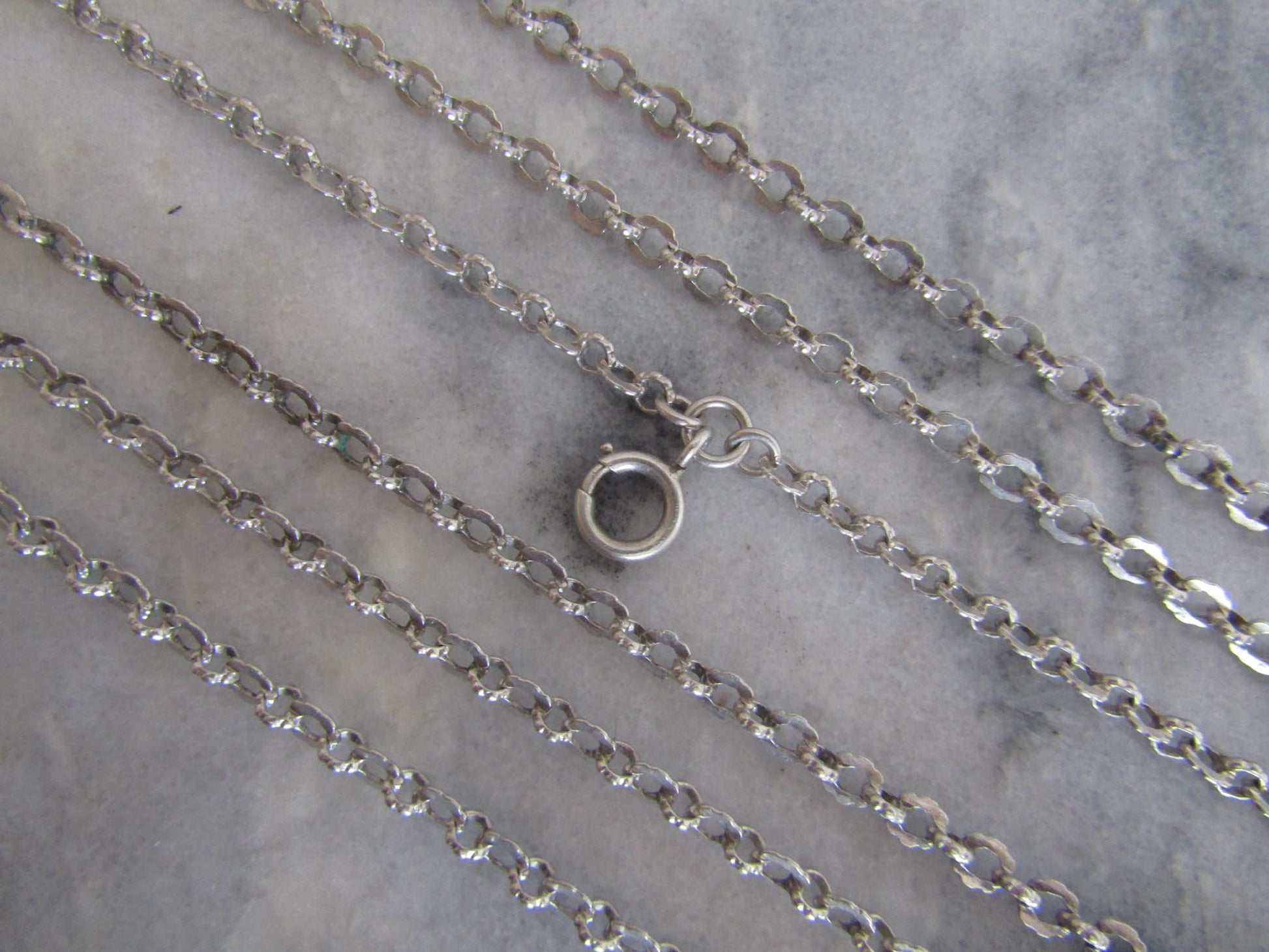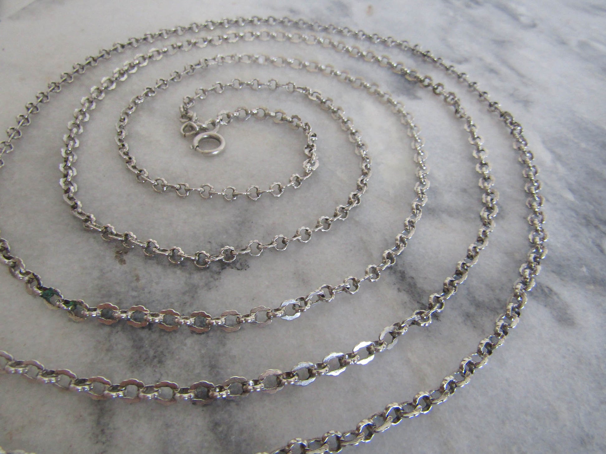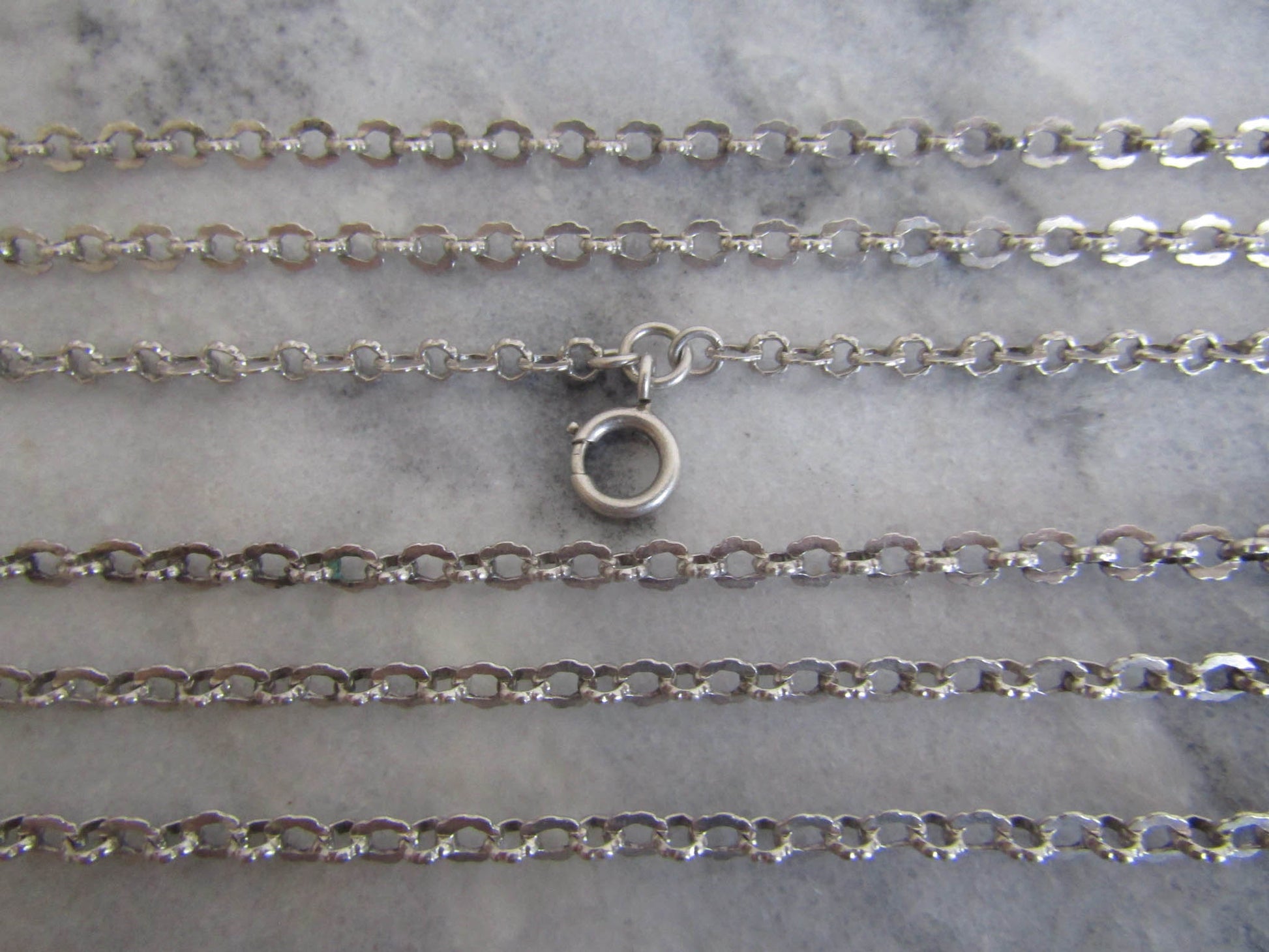 57" Antique French Solid Silver Long Guard Chain, Victorian Muff Chain c. 1900