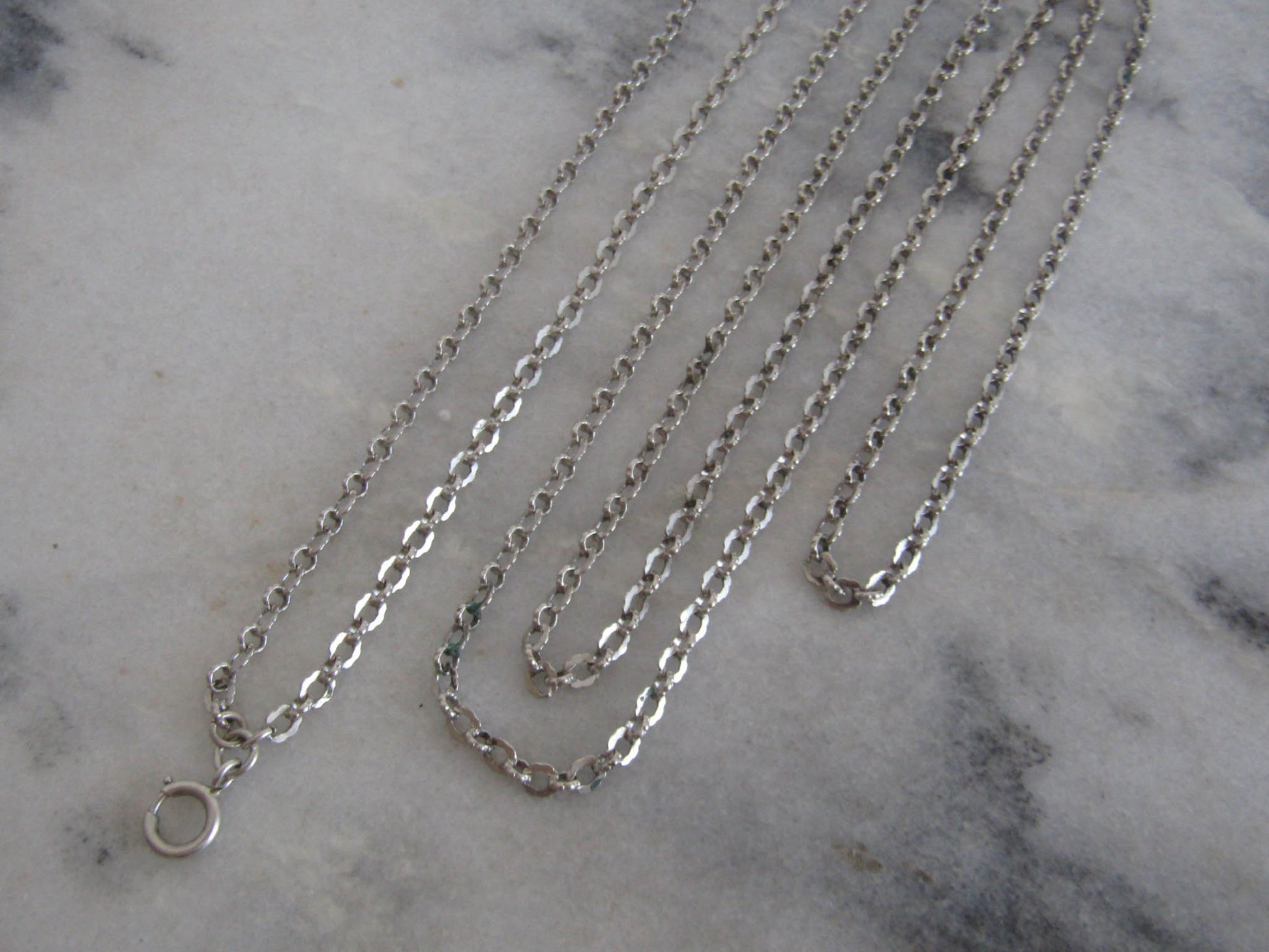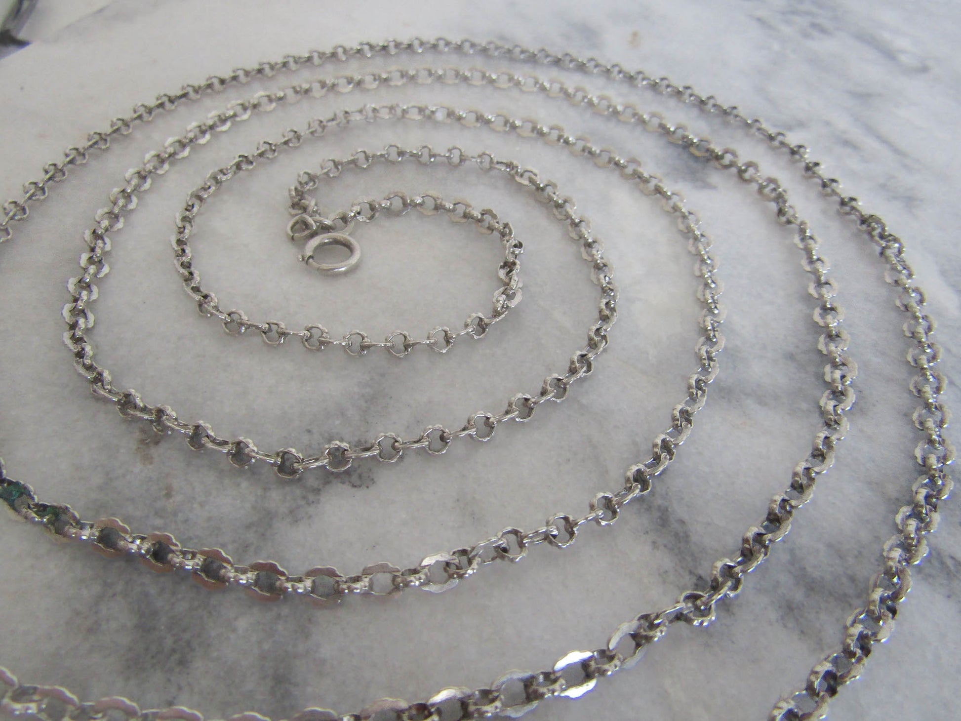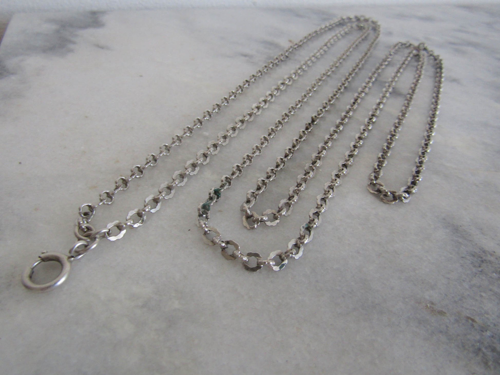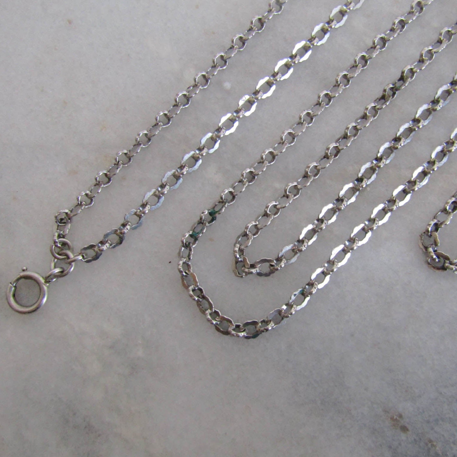 57" Antique French Solid Silver Long Guard Chain, Victorian Muff Chain c. 1900