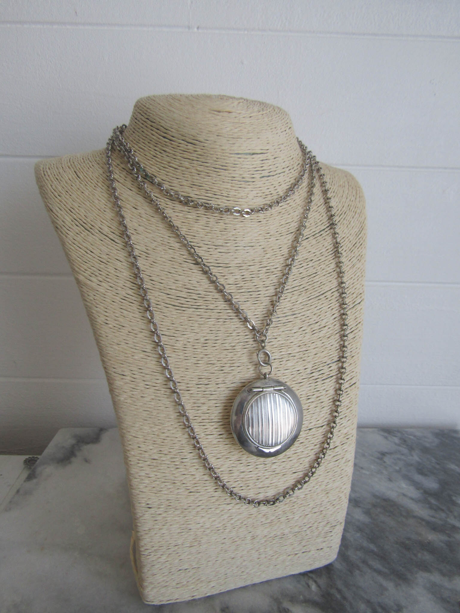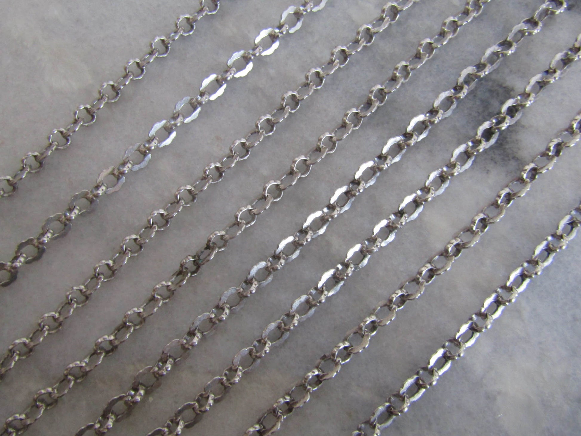 This absolutely stunning silver textured chain is the work of a talented silversmith. Featuring textured round links and fancy flat links, the necklace is completed with a hanging bolt ring. It can be worn as a long necklace, doubled or wrapped three times, as shown. The chain features strong links which are in excellent condition. The necklace is hallmarked with a boar's head, guaranteeing at least 800 minimum silver, standard for continental Europe.