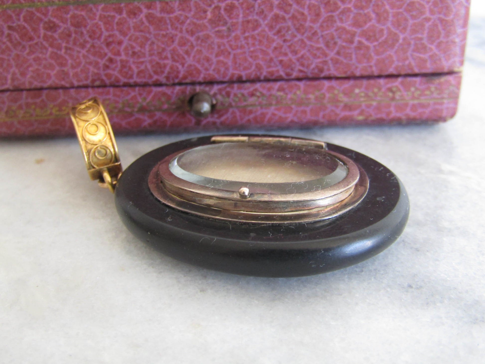 The locket is in good condition with light micro-scratches consistent with age. The closure is secure and despite the lockets age it closes with a satisfying 'click'. It is hallmarked with an owl on the bail.