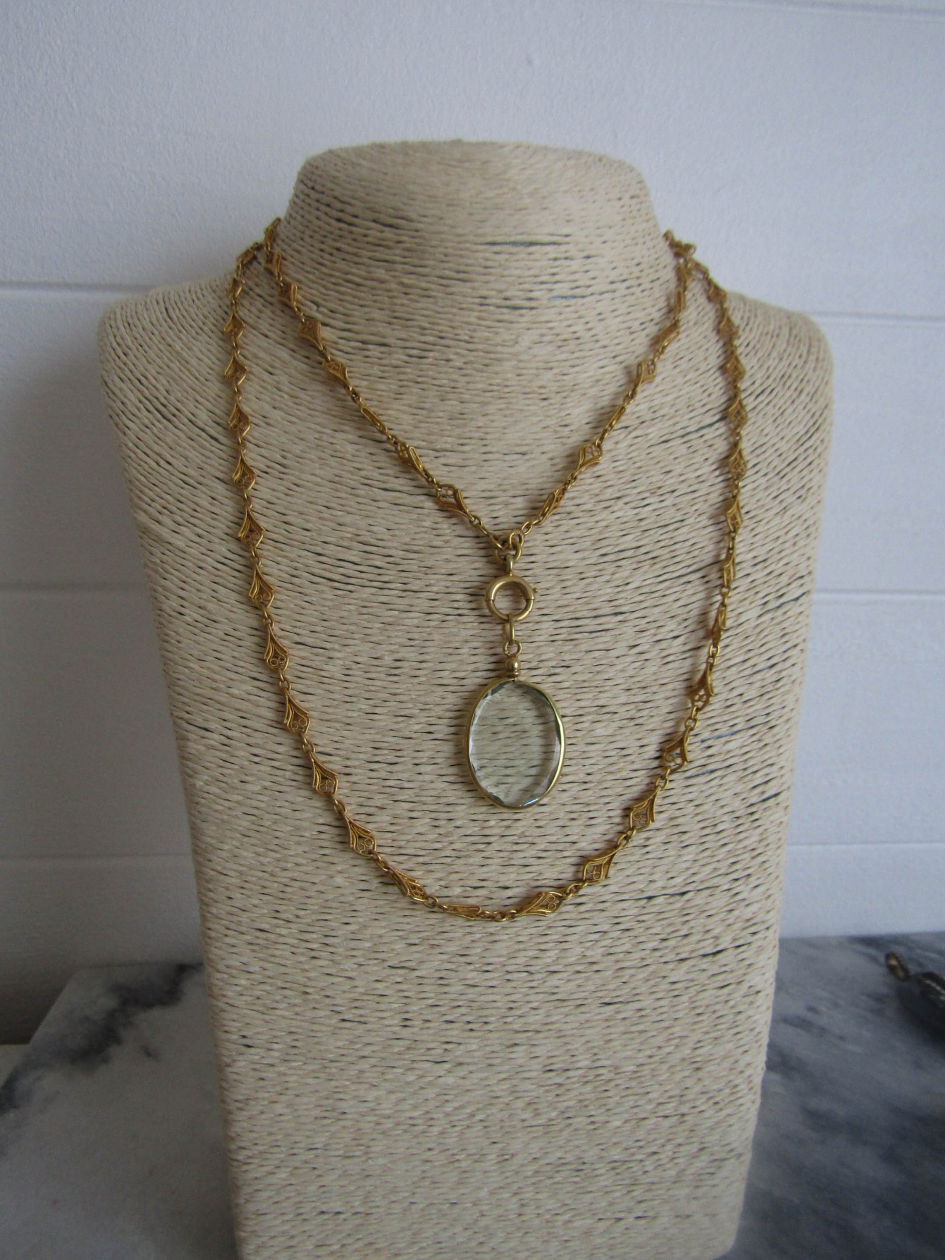 Note that the listing is for the pendant only, although antique chains are available for sale in store.