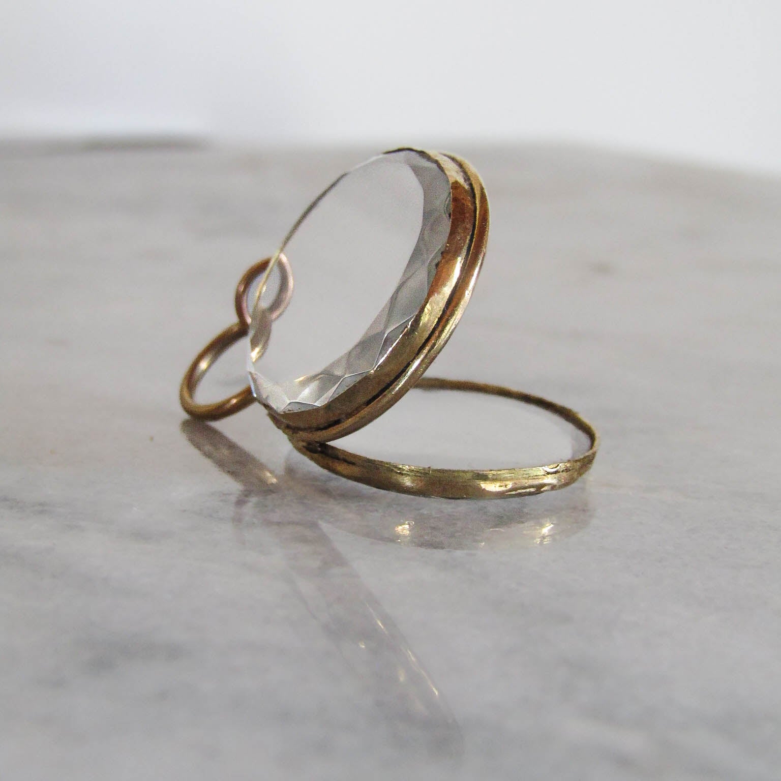 This stunning and unique oval shaker locket features very thick rock crystal (clear quartz), cut to perfection. Something I love about these old pieces is how sentimental they are. They would be the perfect, romantic anniversary gift filled with pressed flowers from a wedding bouquet. They can also commemorate a special moment, for example storing a piece of lace from a baptism gown. And of course, it looks stunning on its own as well. Getting passed down all the way from the Napoleon III period, these shaker lockets are understandably in short supply as they are made of fragile materials. The ones that remain have been well-loved and guarded very preciously, ready for a new pair of hands to hold them with care. T