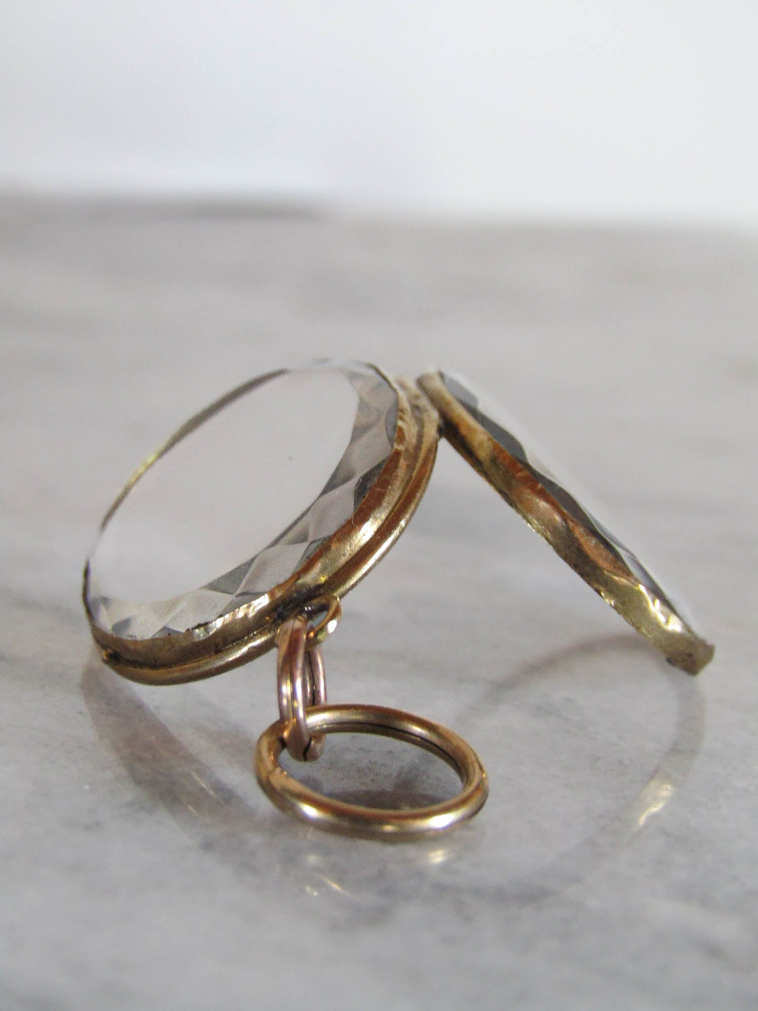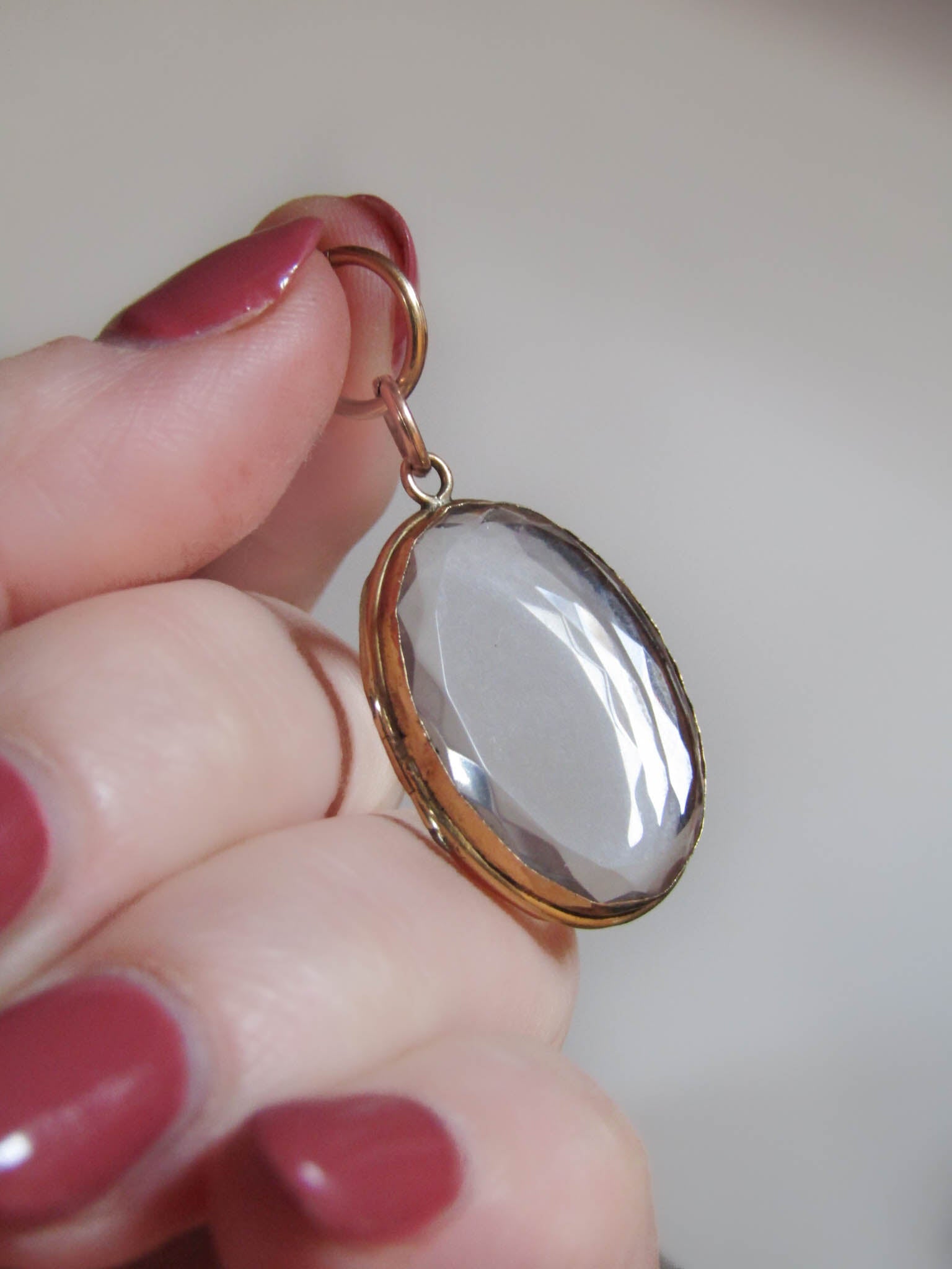 The locket closes well for age with no noticeable wear to the facets or scratches to the crystal faces. It doesn't fly open when worn but doesn't have an extremely secure latch.