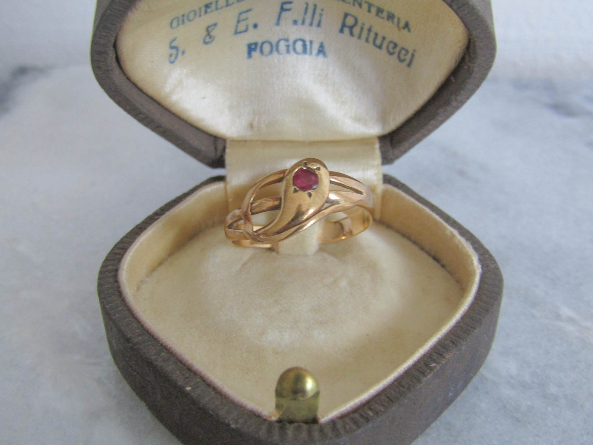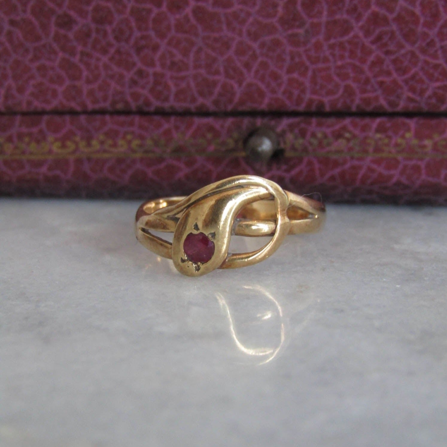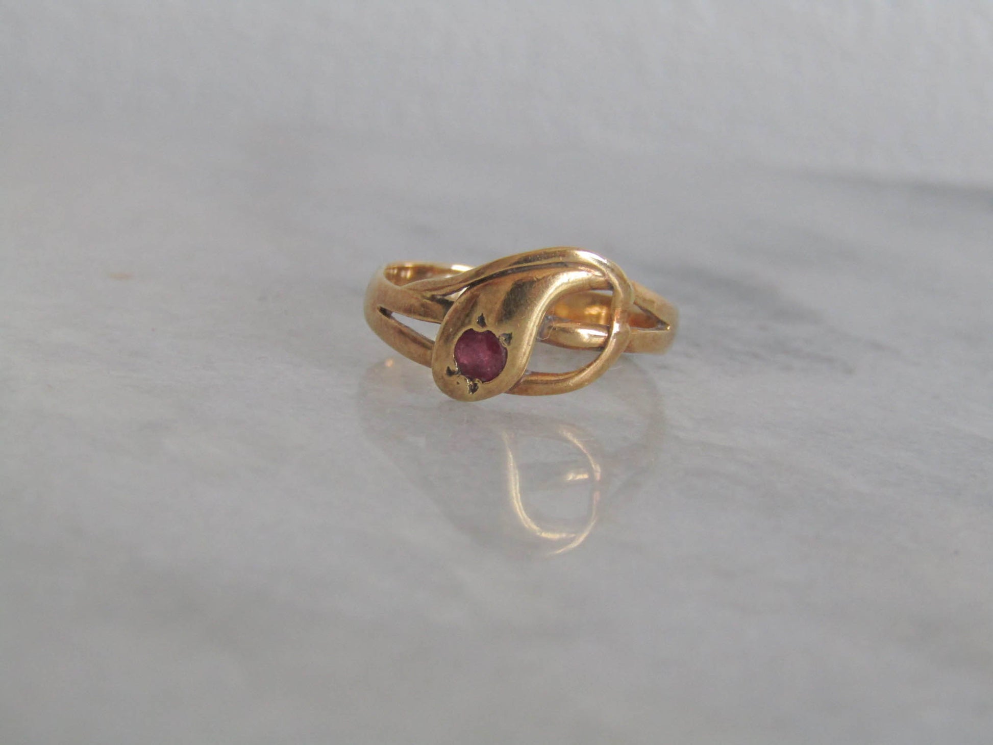 Antique 18k Solid Gold Snake Ring with Ruby Eye, French Victorian Belle Epoque Snake Ring
