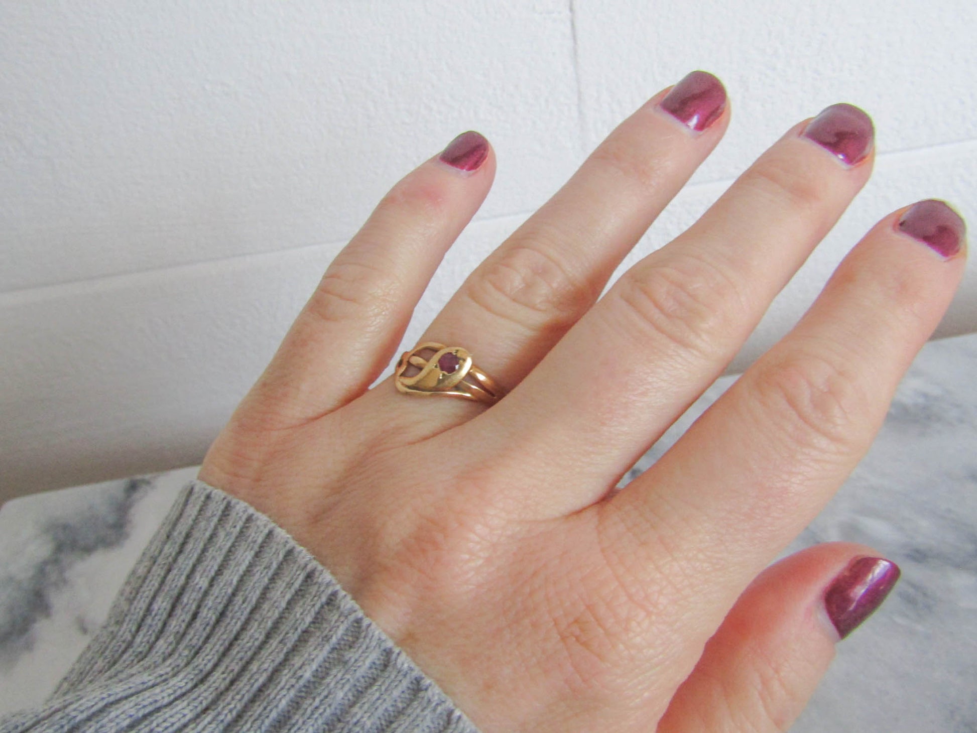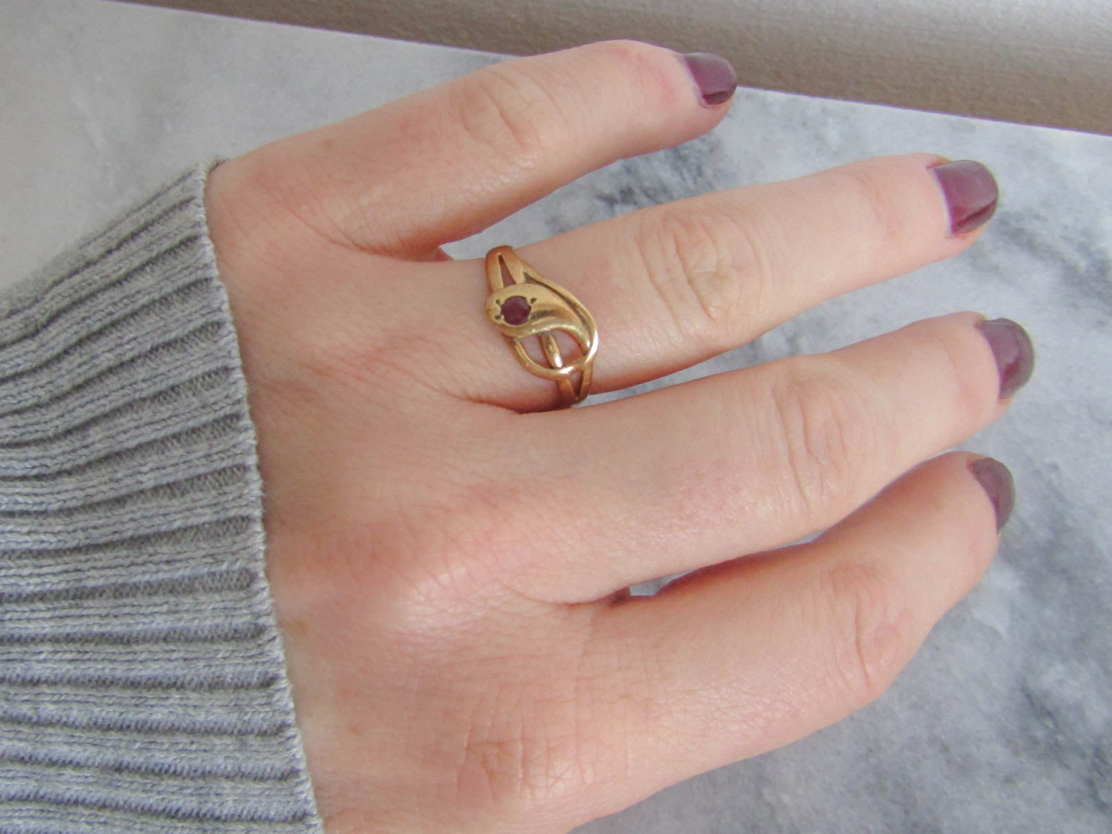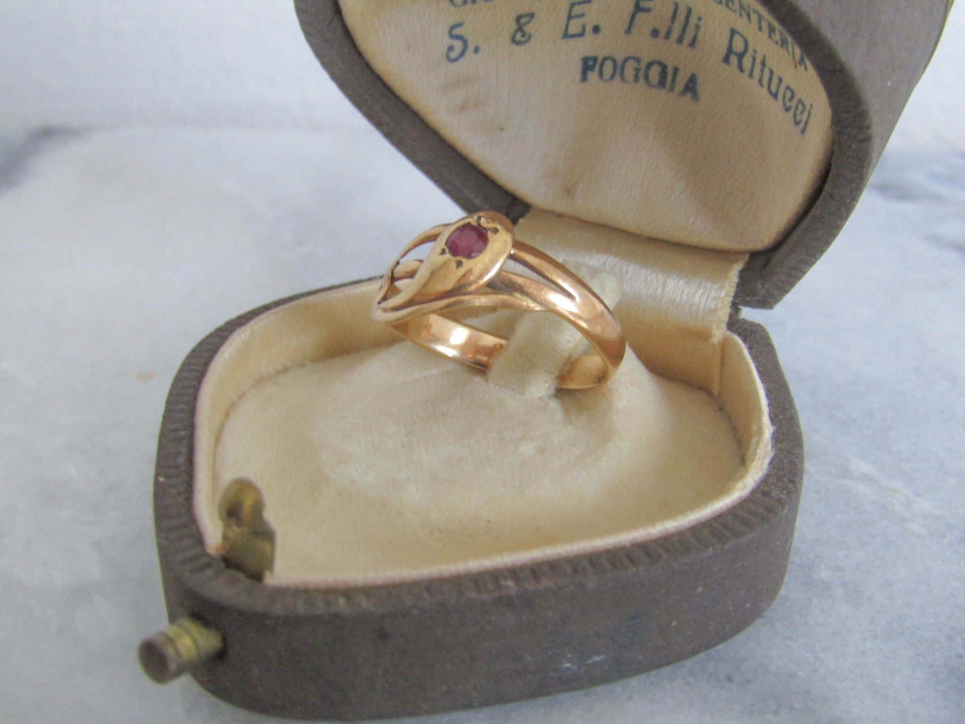 Antique 18k Solid Gold Snake Ring with Ruby Eye, French Victorian Belle Epoque Snake Ring