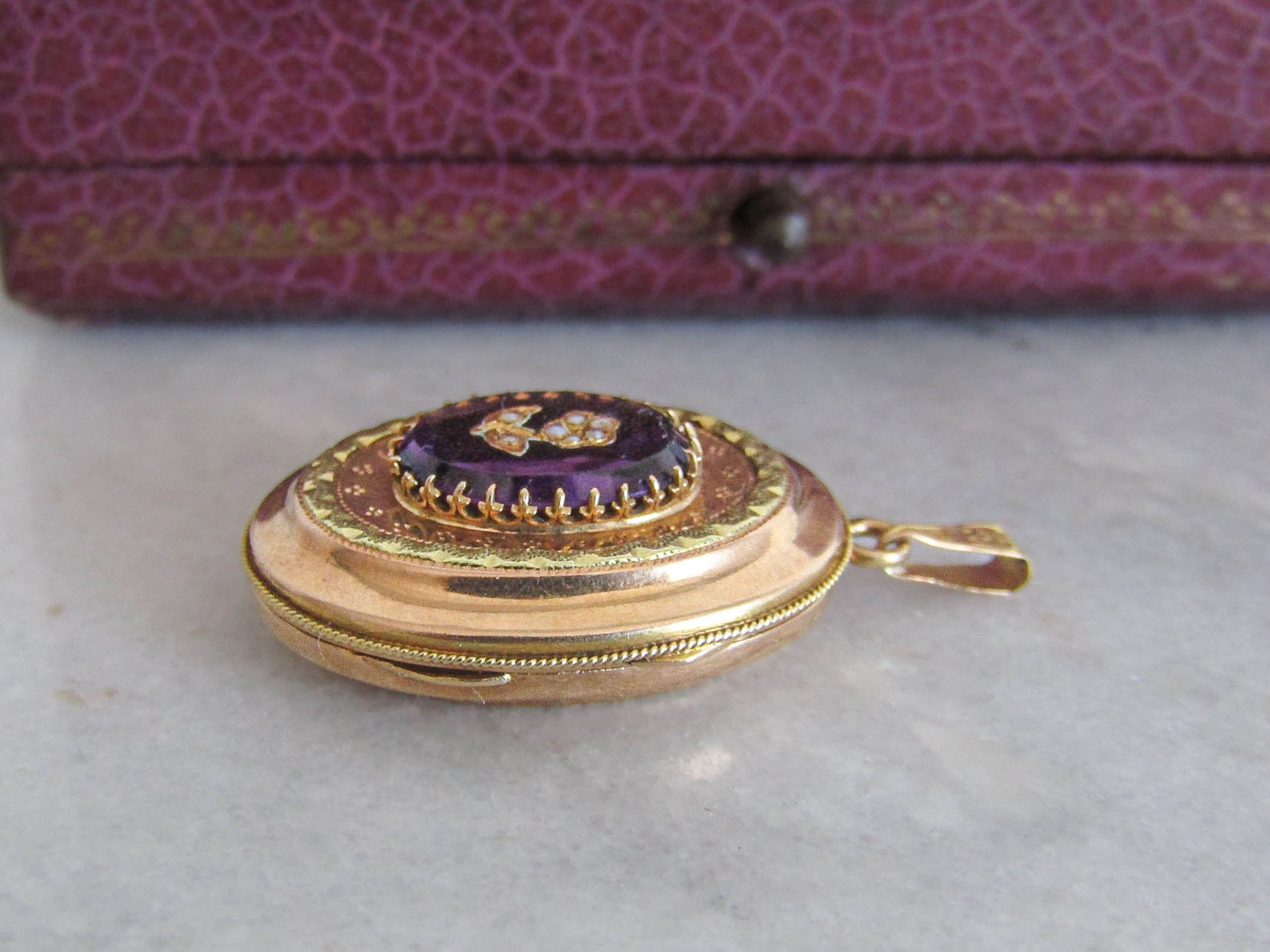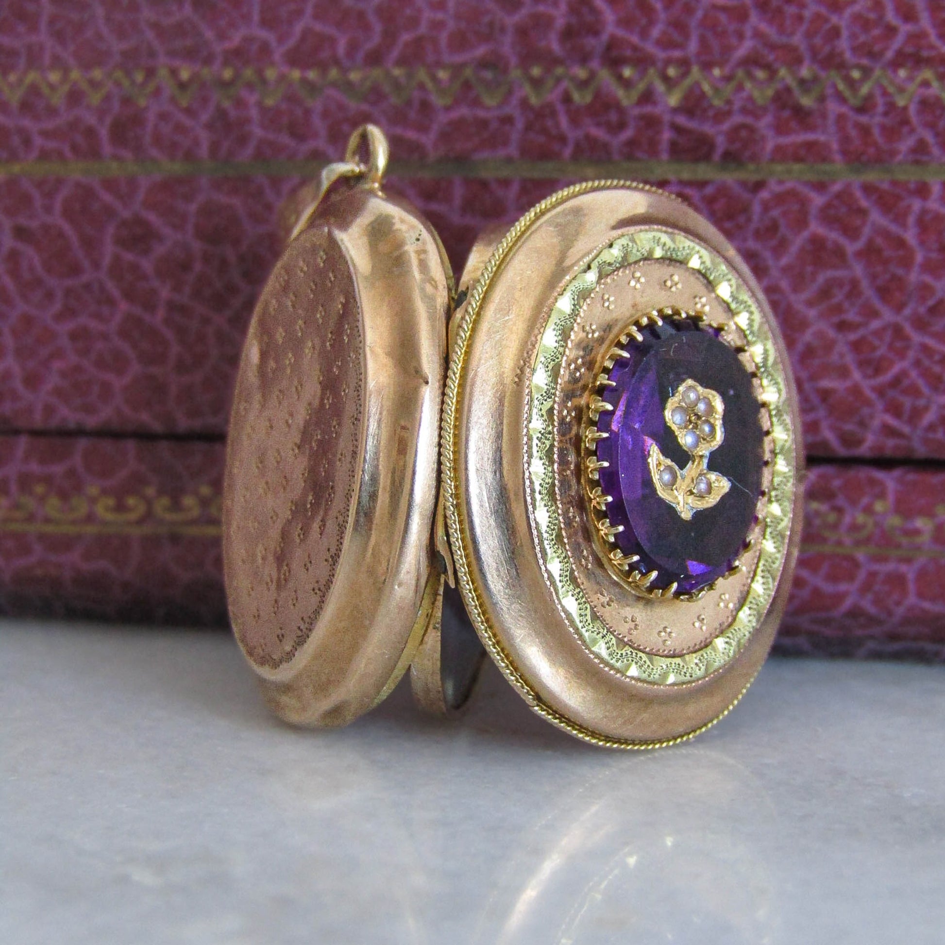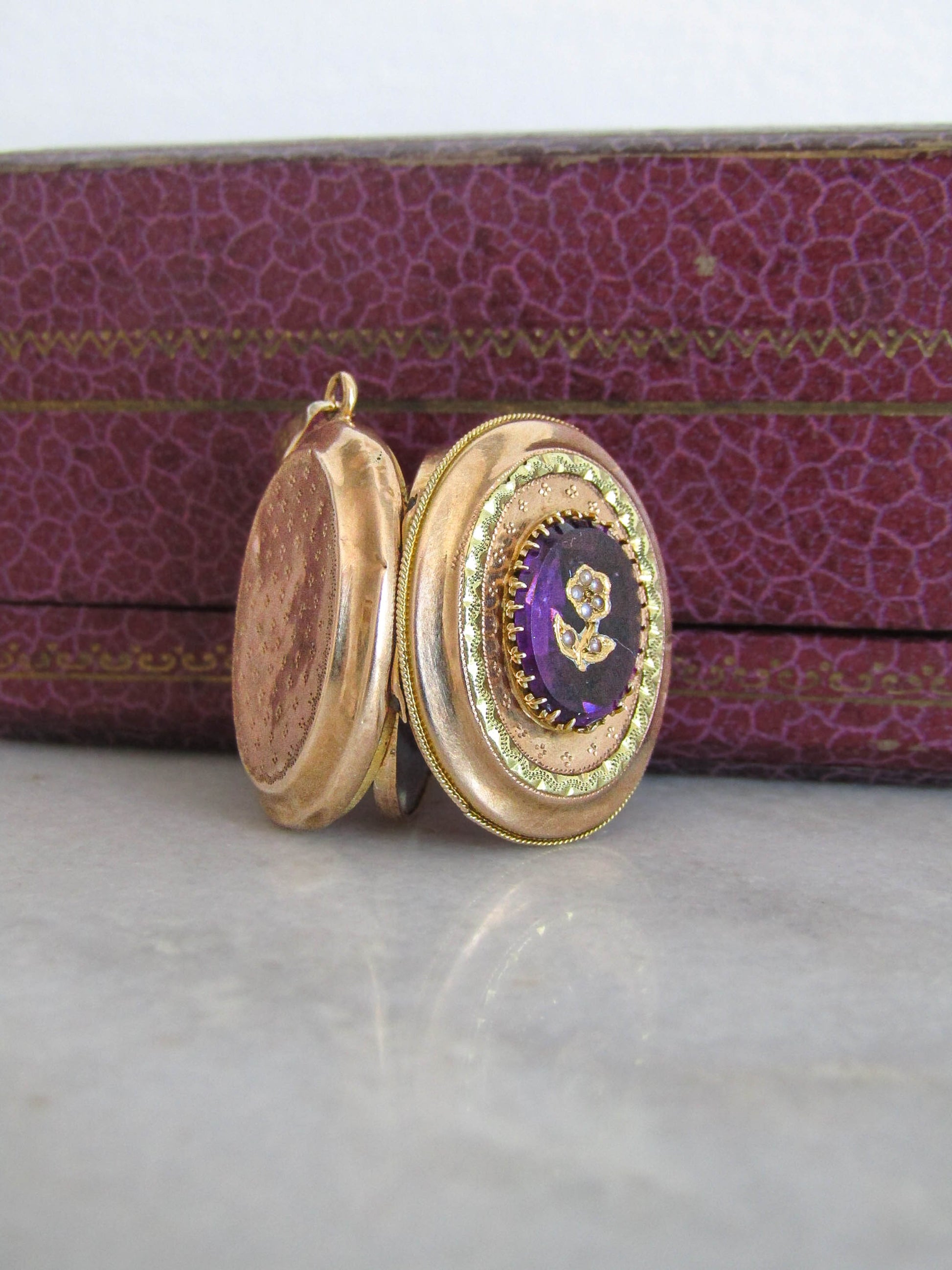 Antique Belle Epoque Victorian Amethyst Paste Locket c. 1870