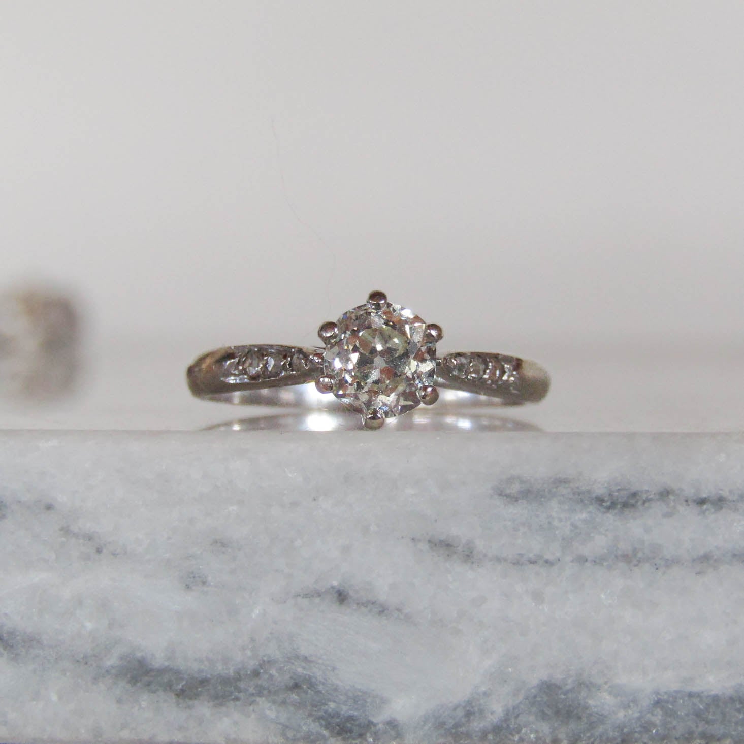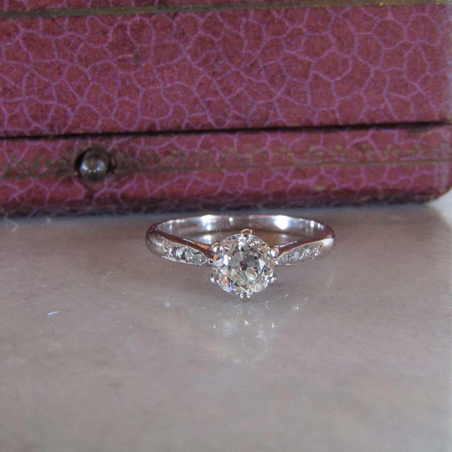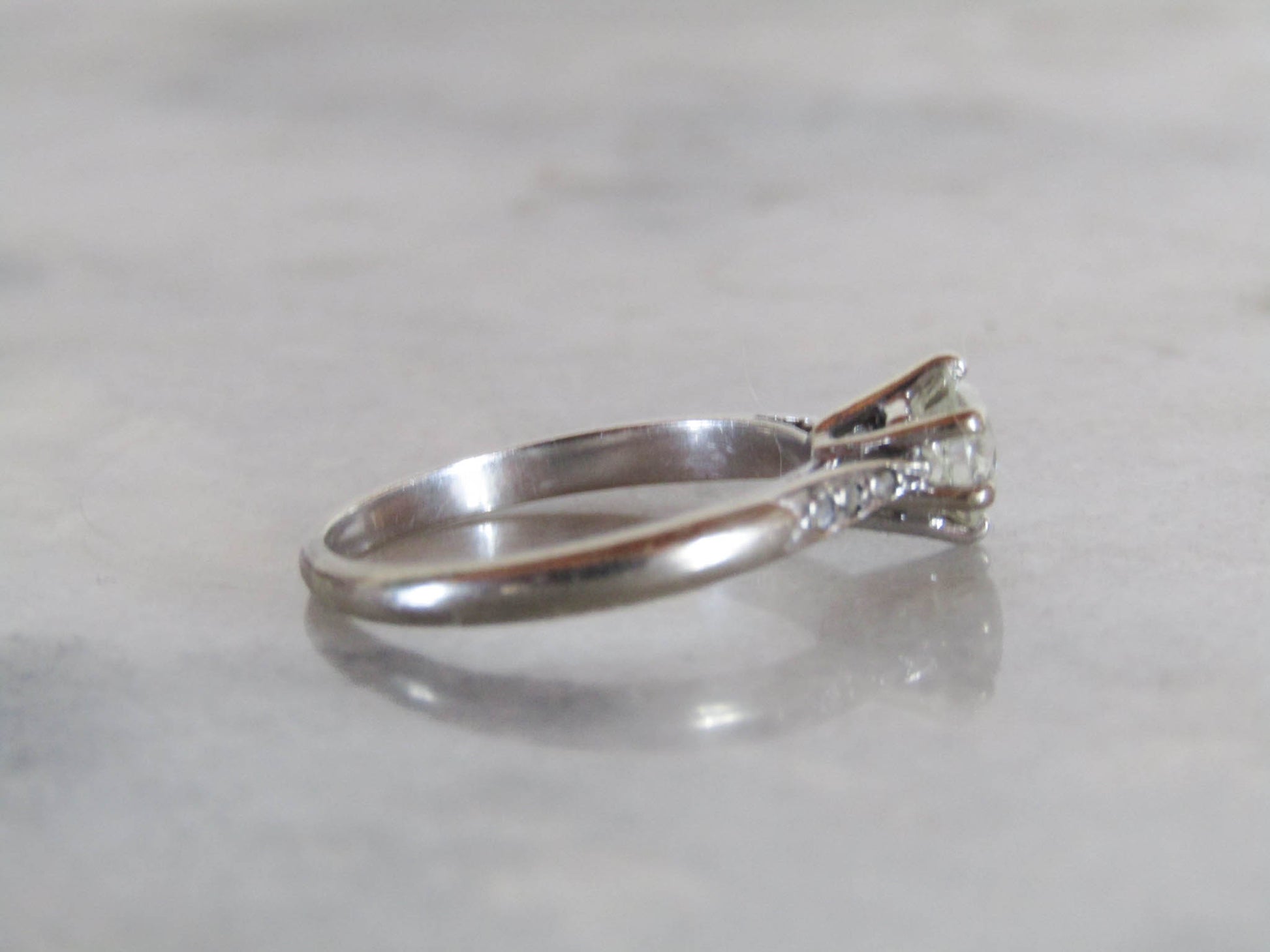 Antique French 18k White Gold Diamond Solitaire Ring, .75 carat Engagement Ring c. 1920