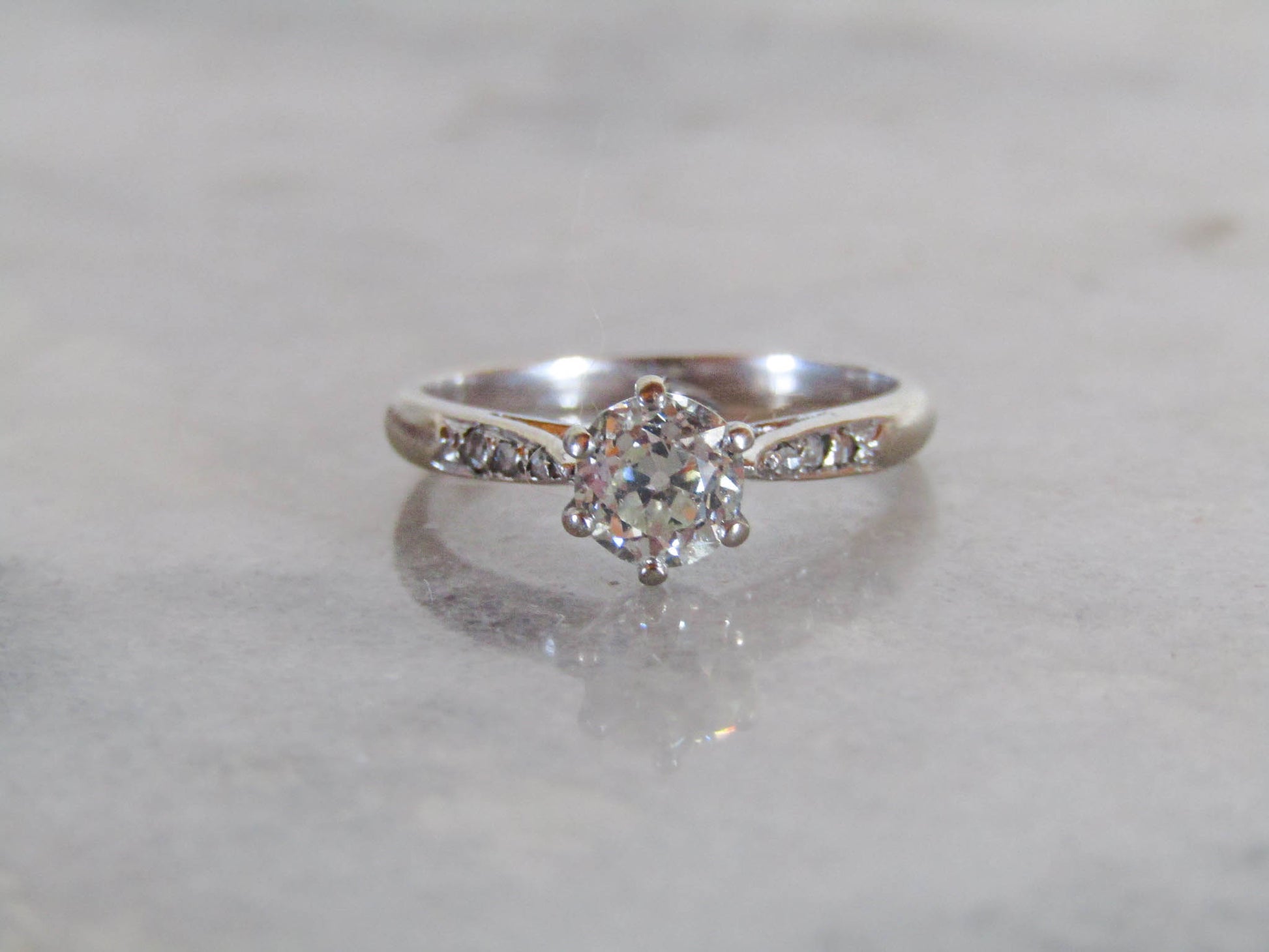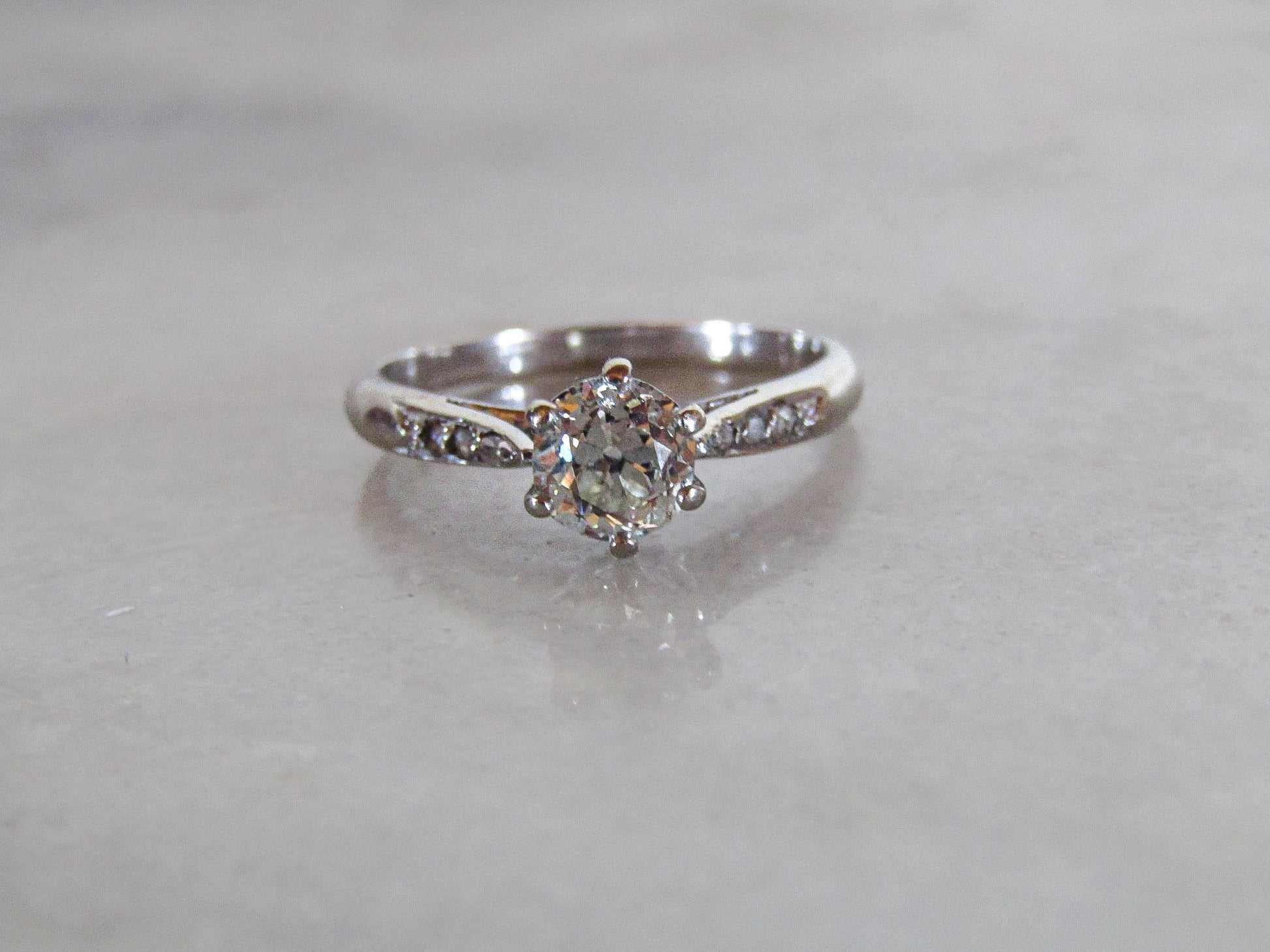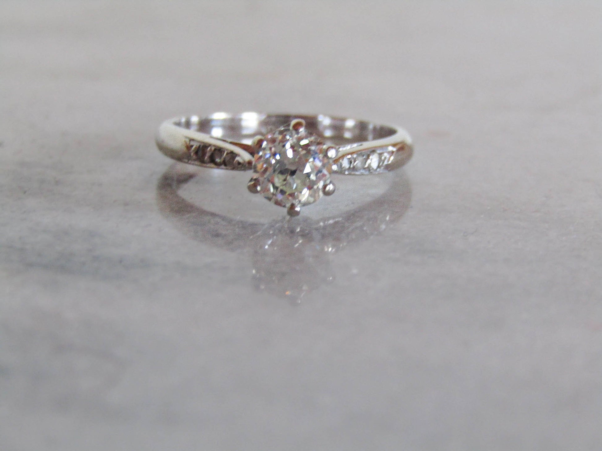 Antique French 18k White Gold Diamond Solitaire Ring, .75 carat Engagement Ring c. 1920