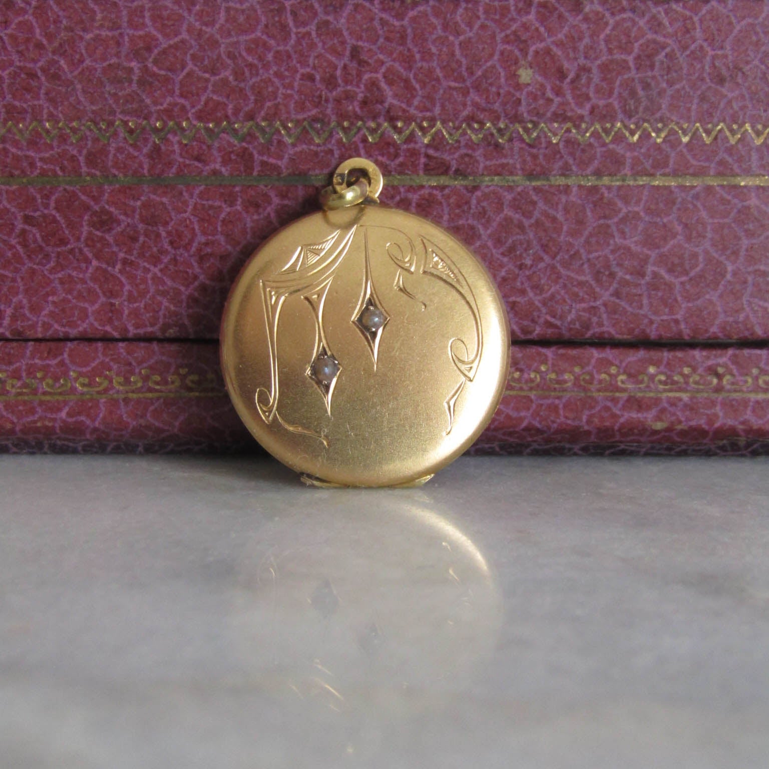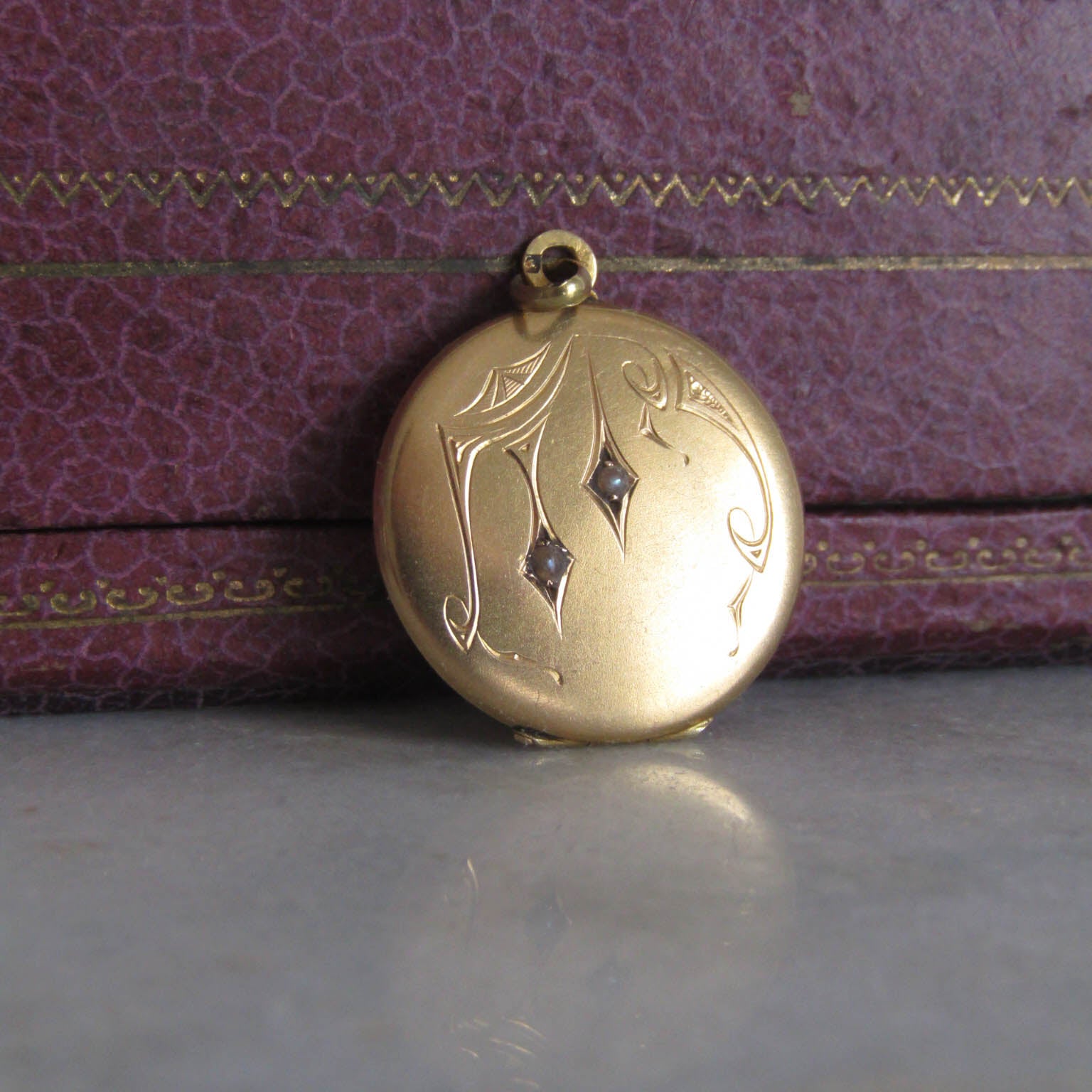 Antique French Edwardian Round Locket with Seed Pearls c. 1900