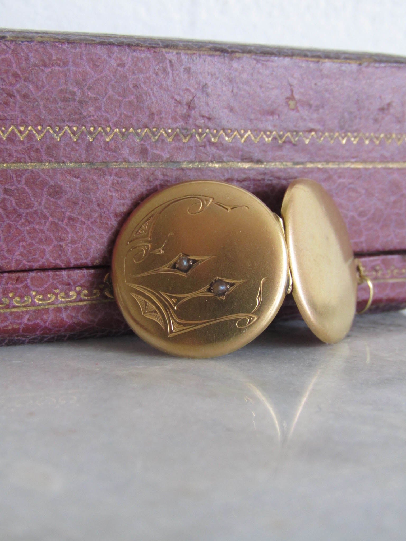 The locket has several dents to the reverse, visible in photos and videos. Each imperfection reveals a moment lived, a memory cherished, and a testament to the locket's enduring nature.