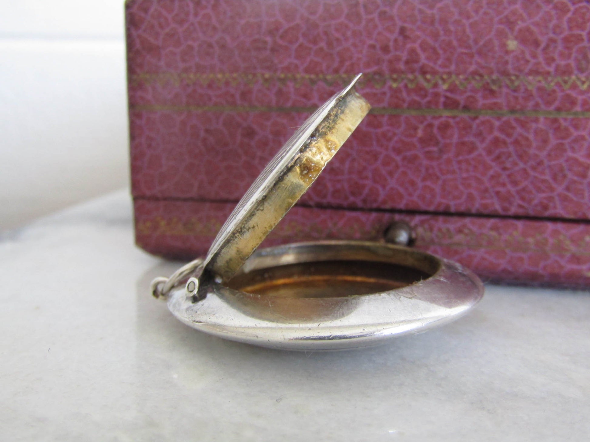 The pendant is in excellent antique condition and closes well. The pendant has two boar's head hallmarks on the interior rim for a minimum 800 silver finesse, standard for France during the Art Nouveau period.