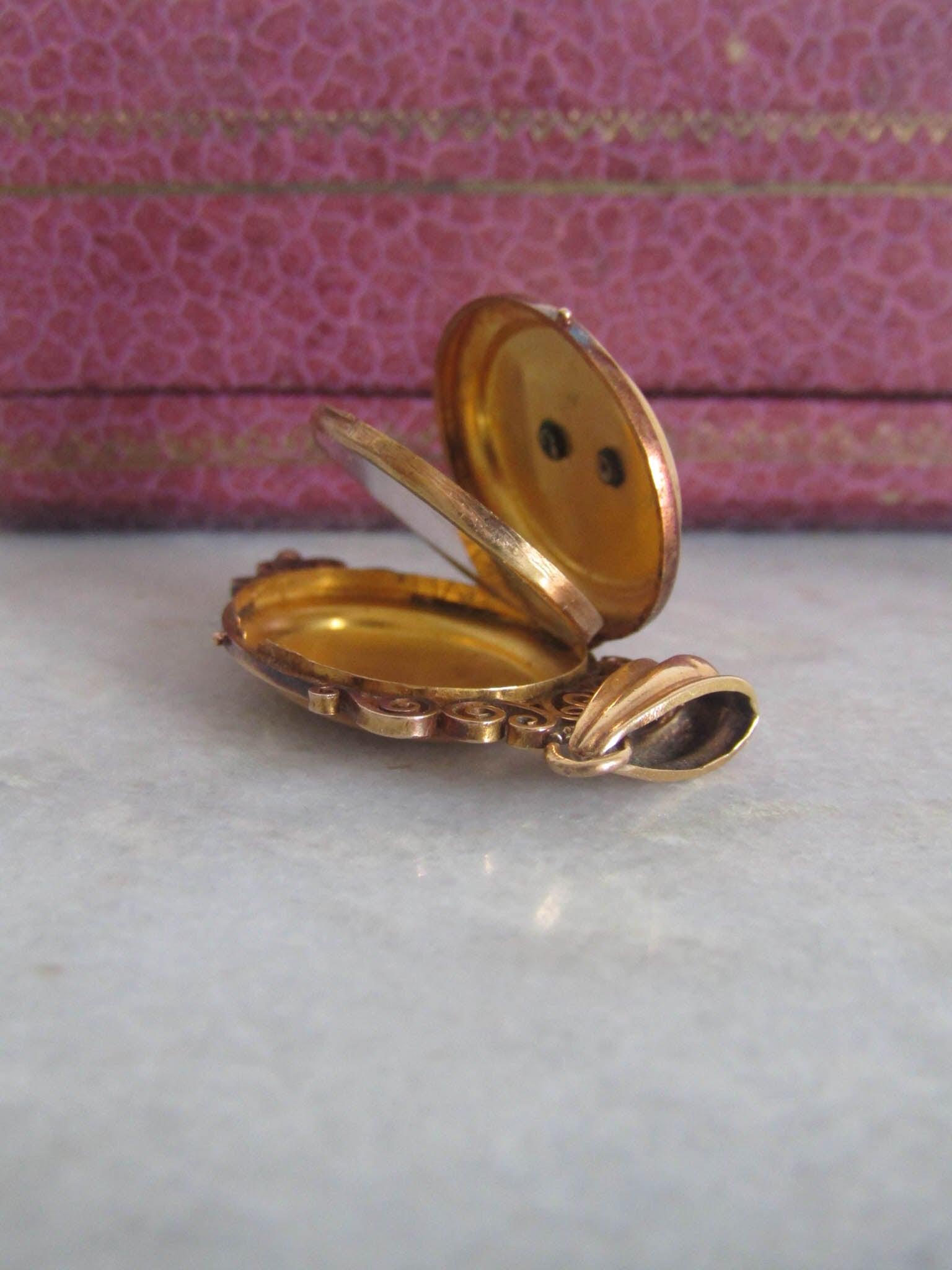 Antique French Victorian Vinaigrette 18k Solid Gold Locket with Hinged Glass Partition