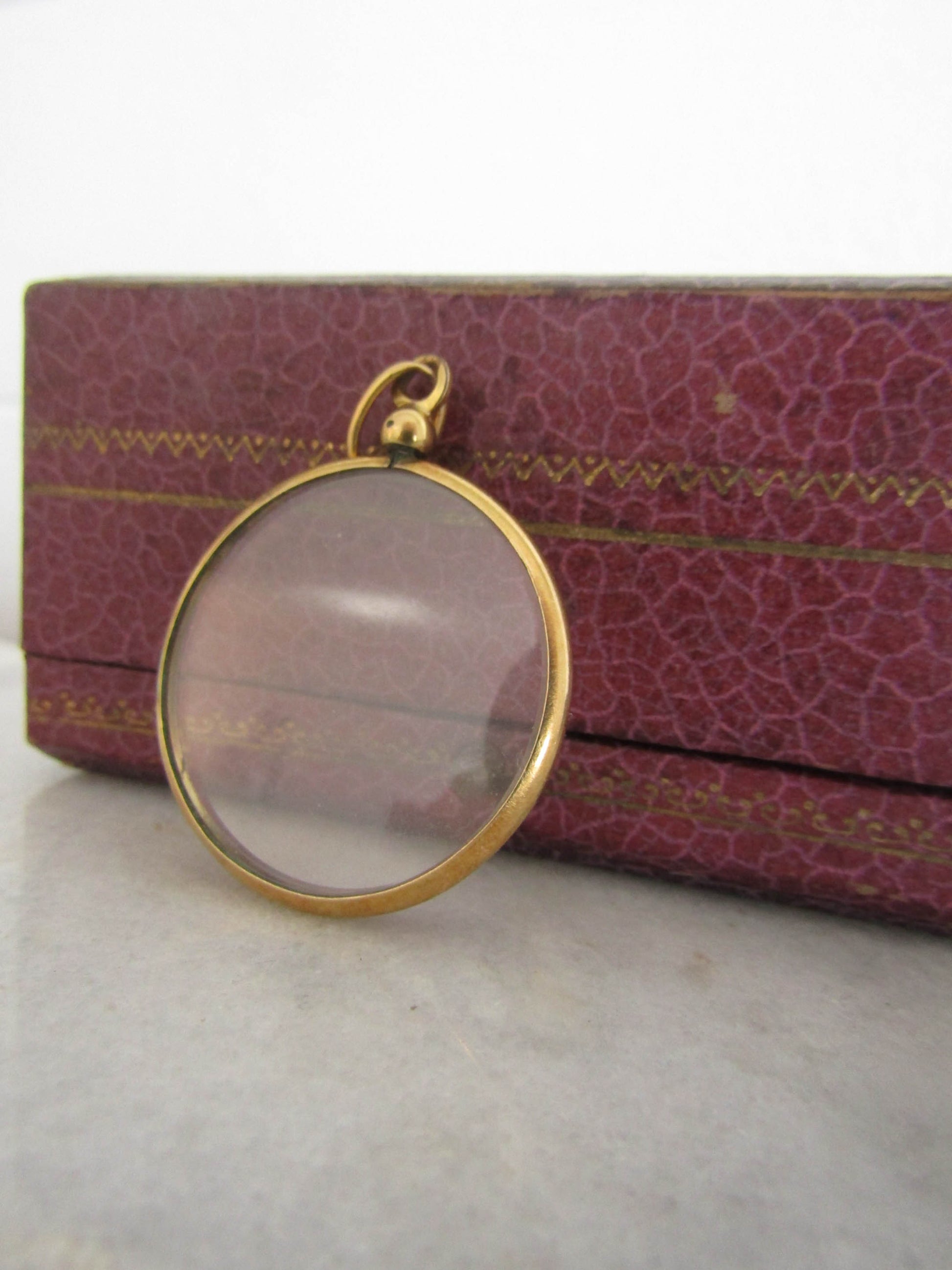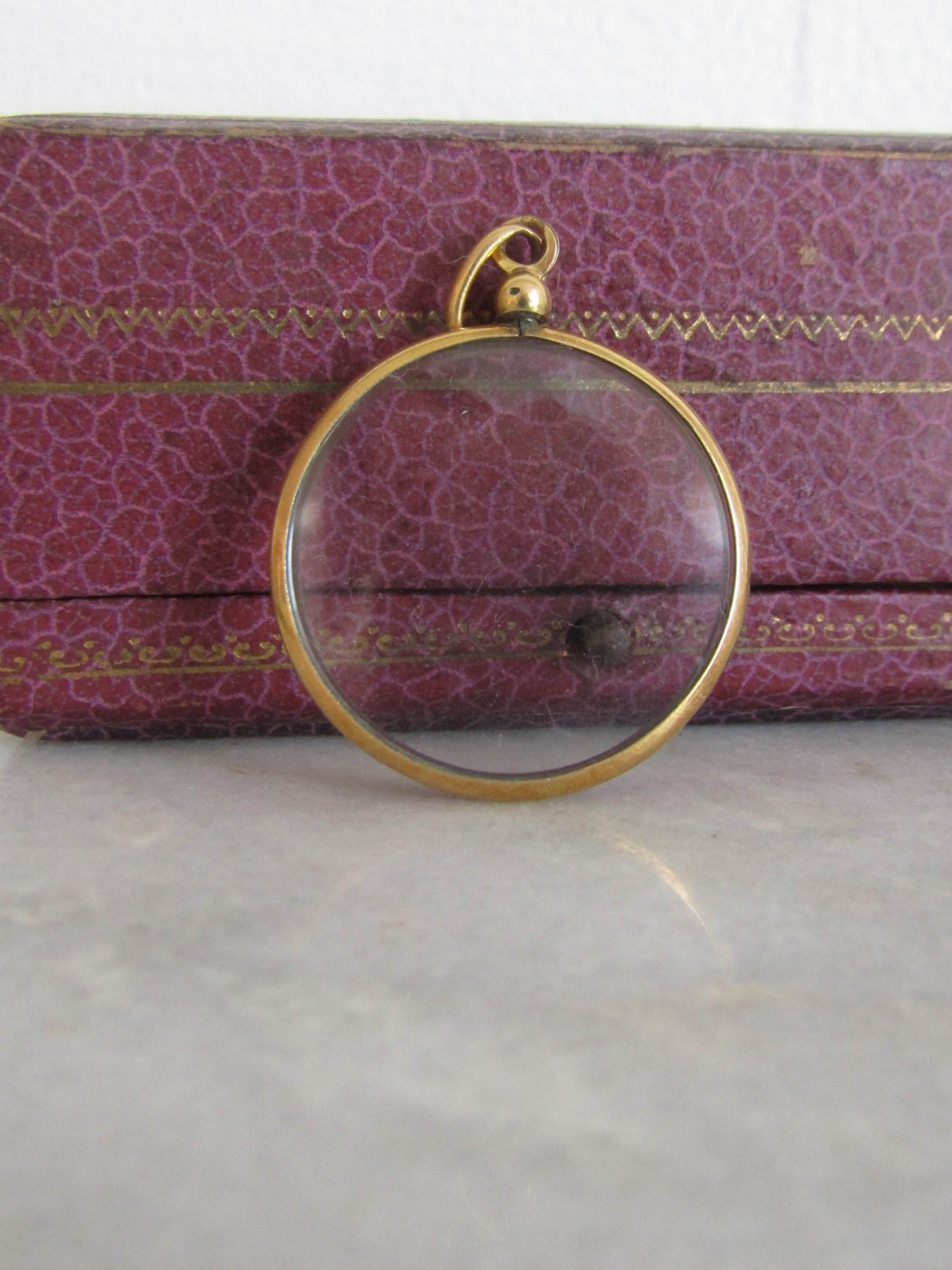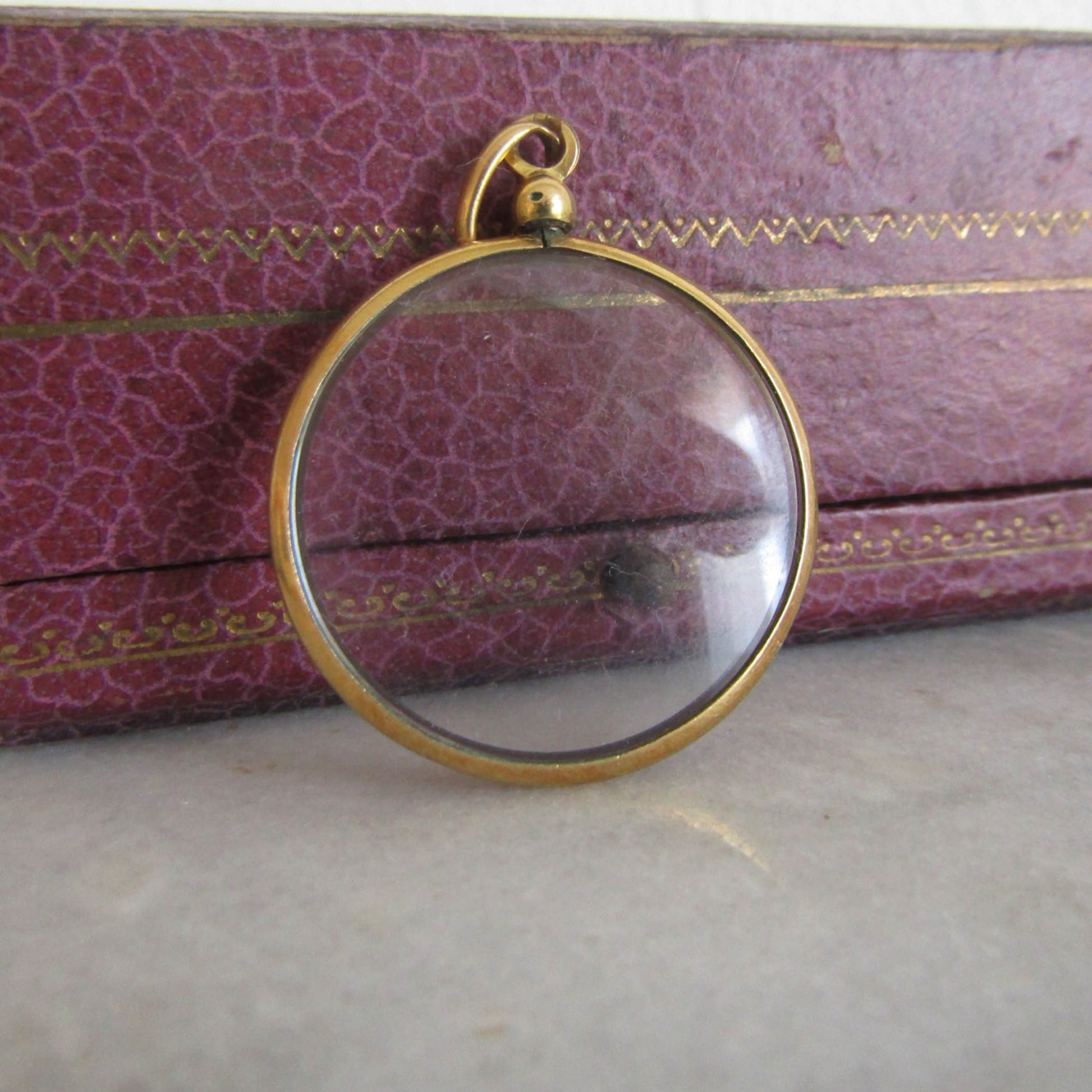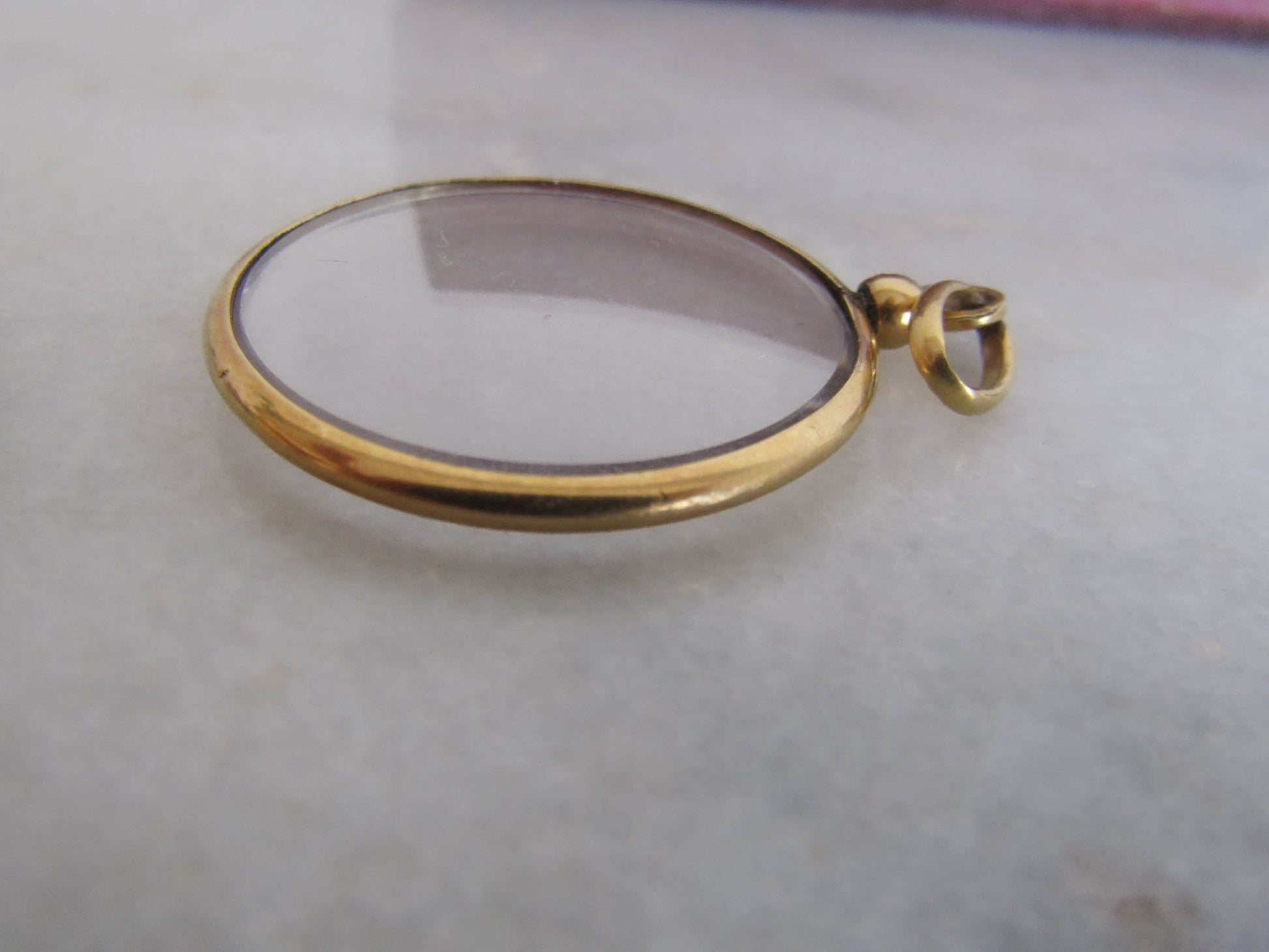 Antique Gold Filled Edwardian Large Glass Sentimental Locket c. 1900