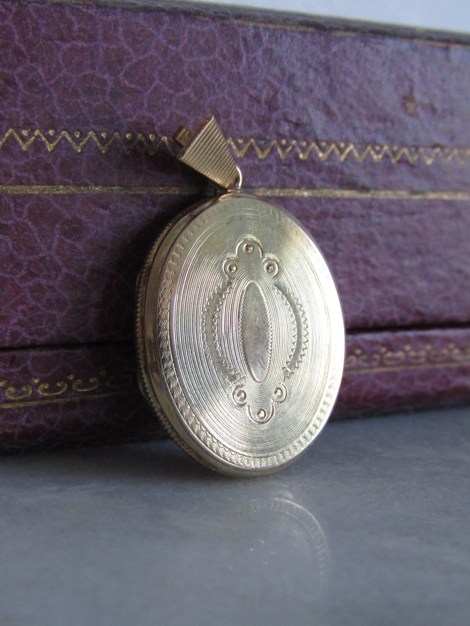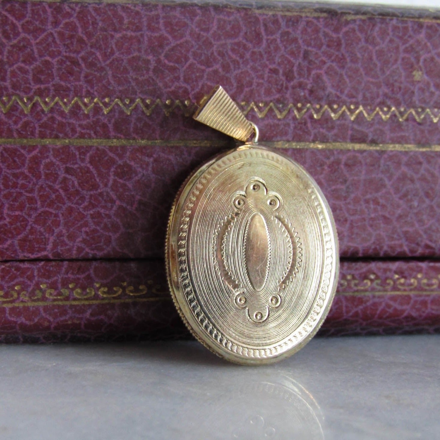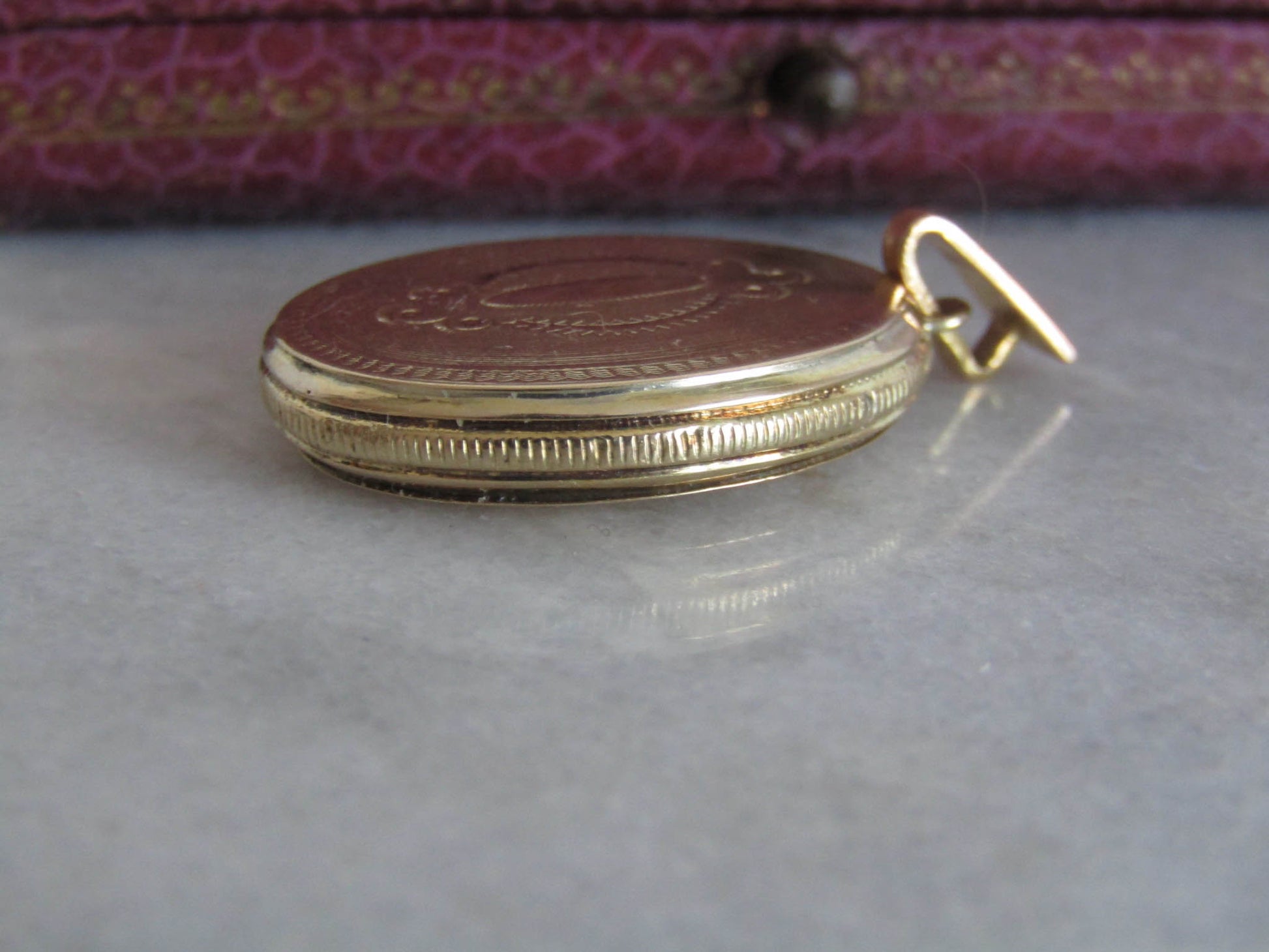 Antique Gold Filled Guilloche Engine Turned Pendant Locket with Interior Glass Frames