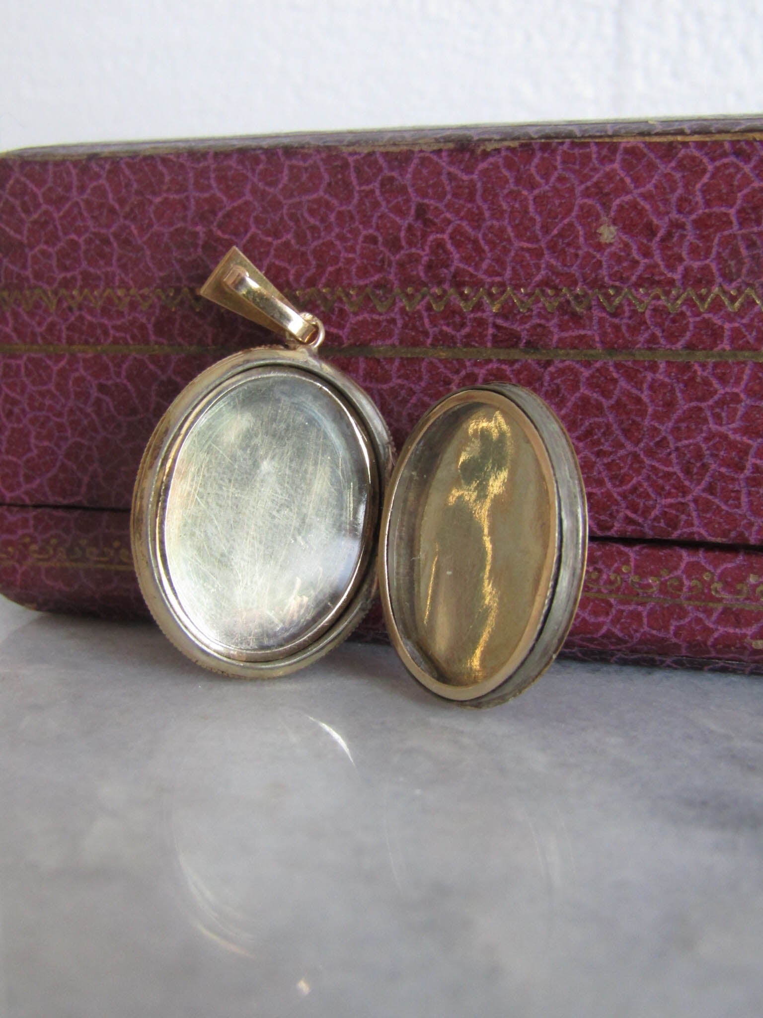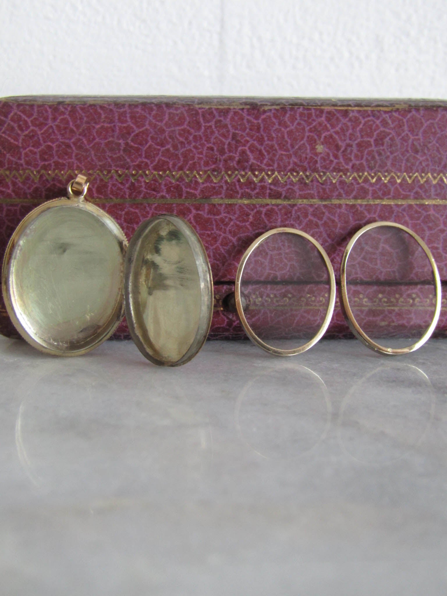 Very good antique condition with a back that closes securely. The bail is strong and secure. The frames are in good condition with no cracks or scratches. There is no notable gold fill loss