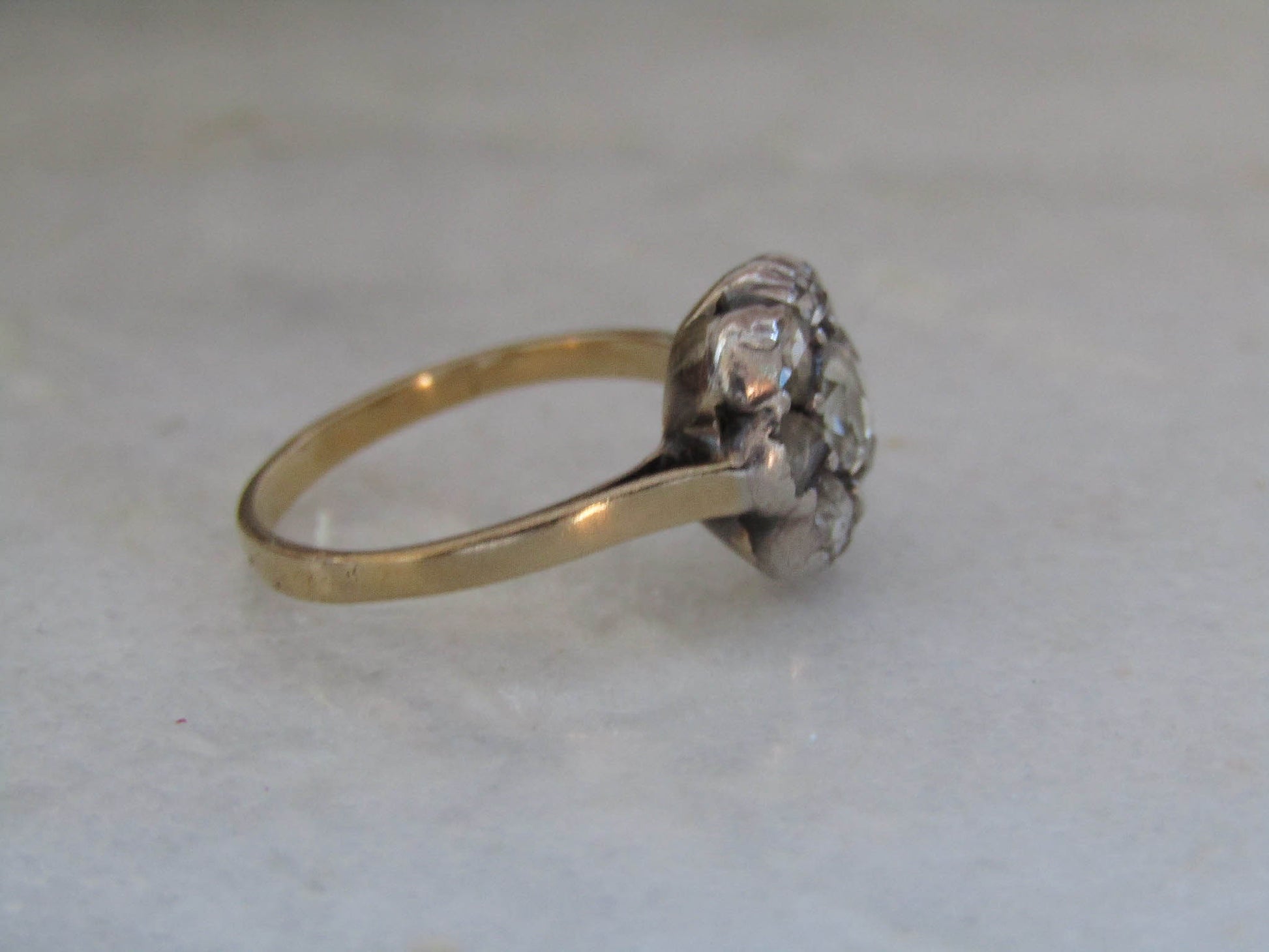 Antique Rose Cut Diamond Daisy Ring, 18K Gold, Belle Epoque