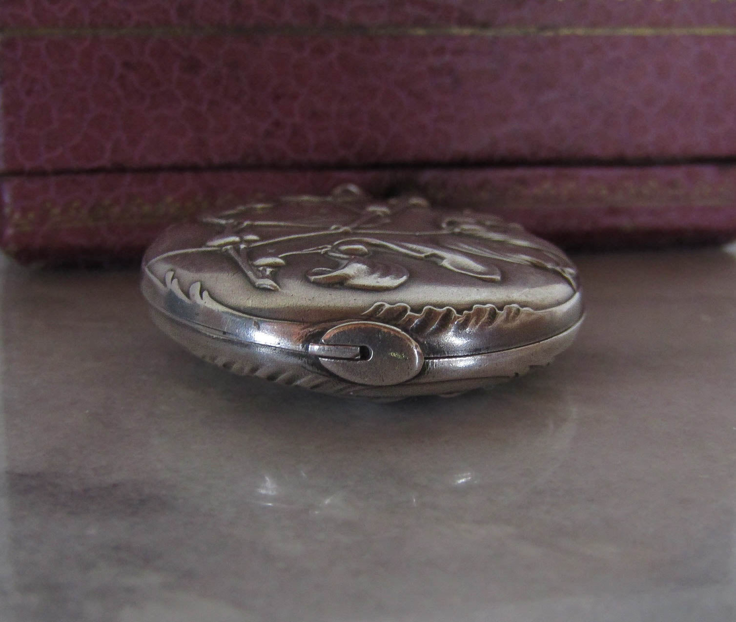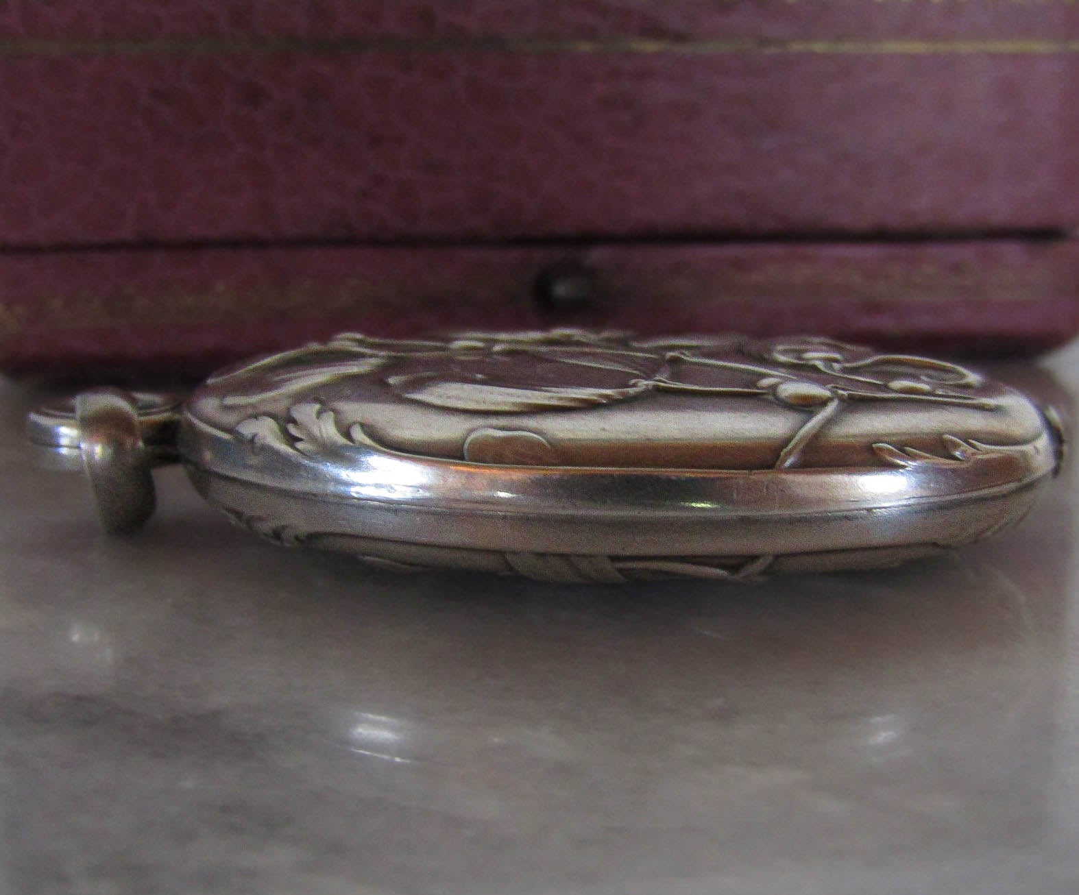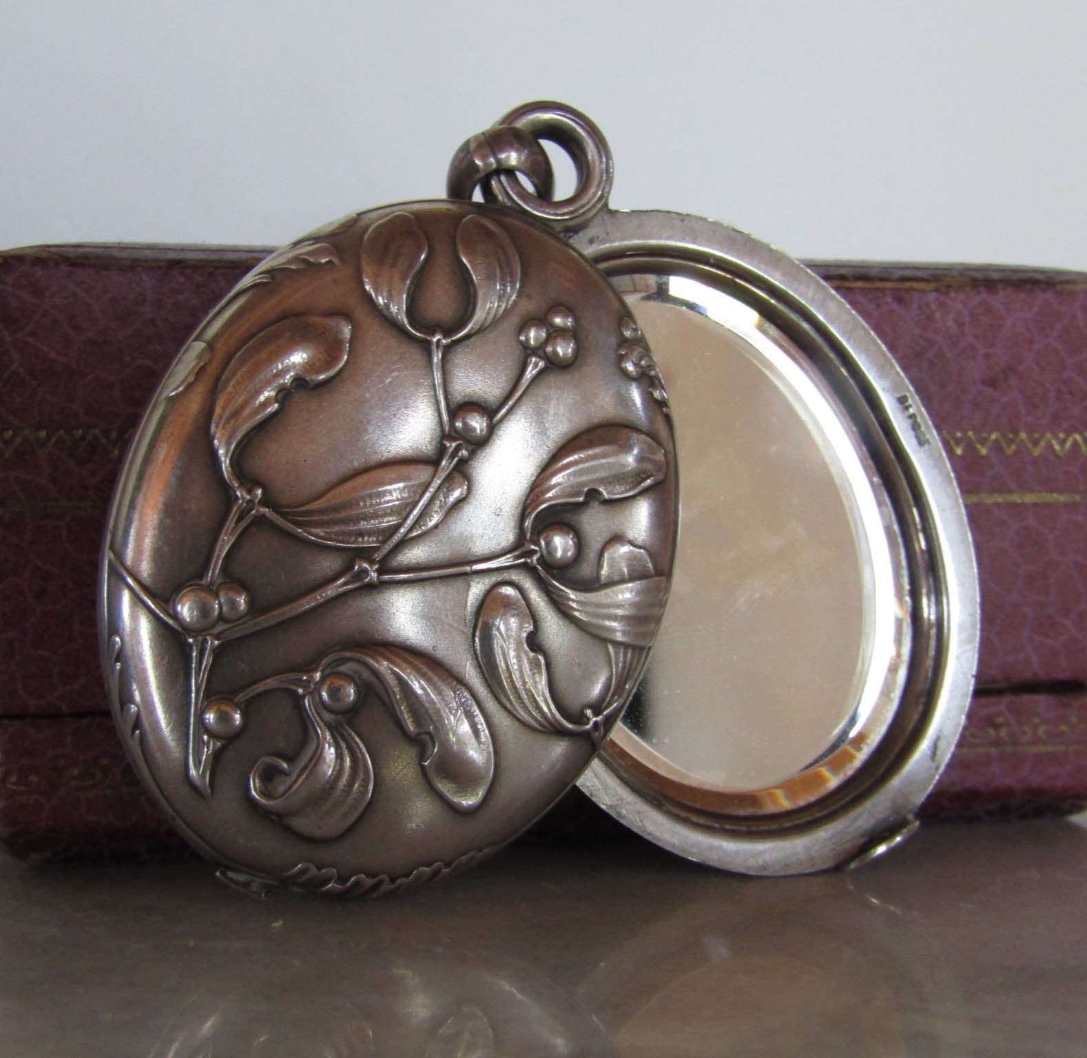 Antique Silver Art Nouveau Mistletoe Slide Mirror Pendant c. 1900, French Belle Epoque Locket