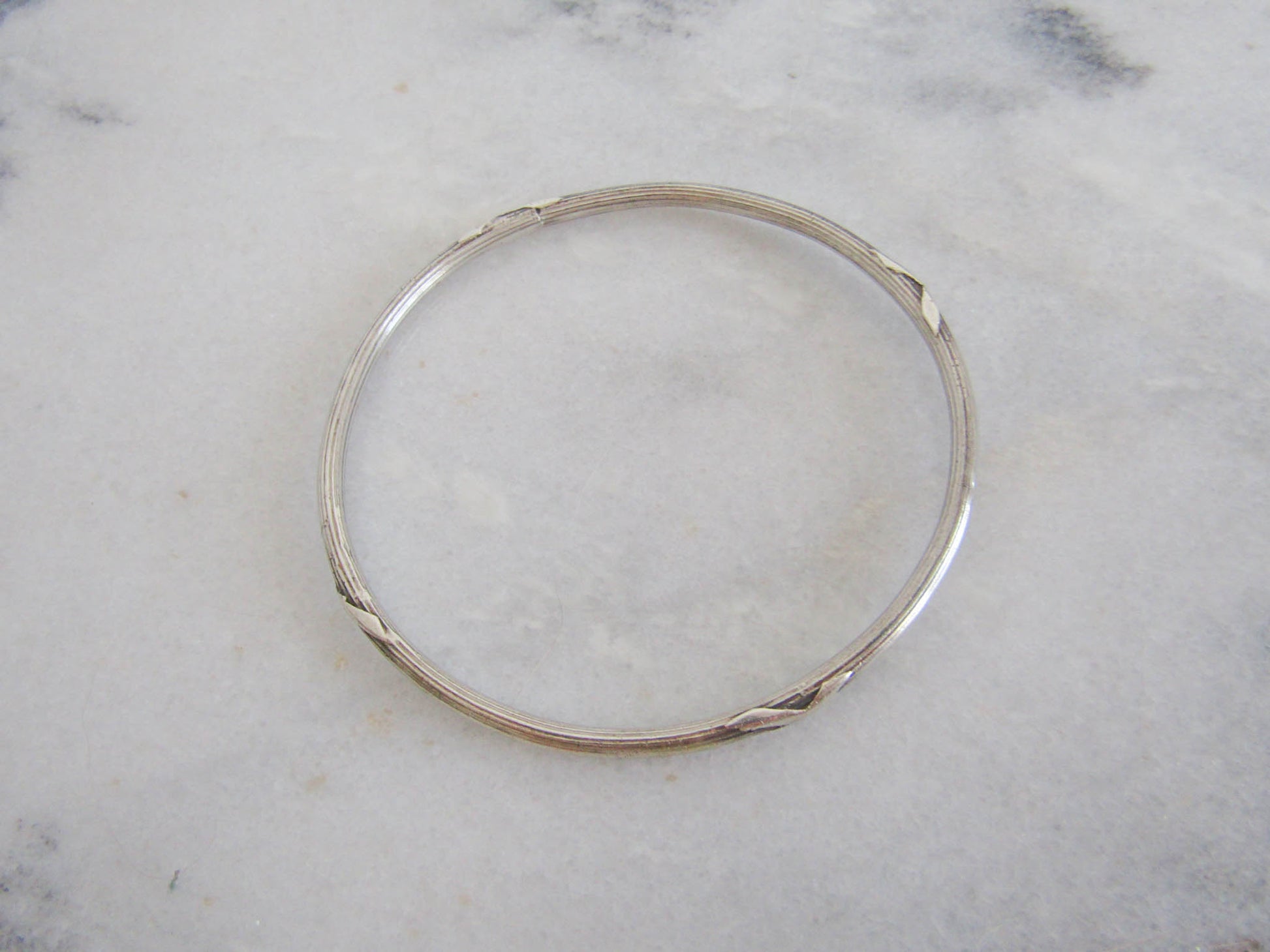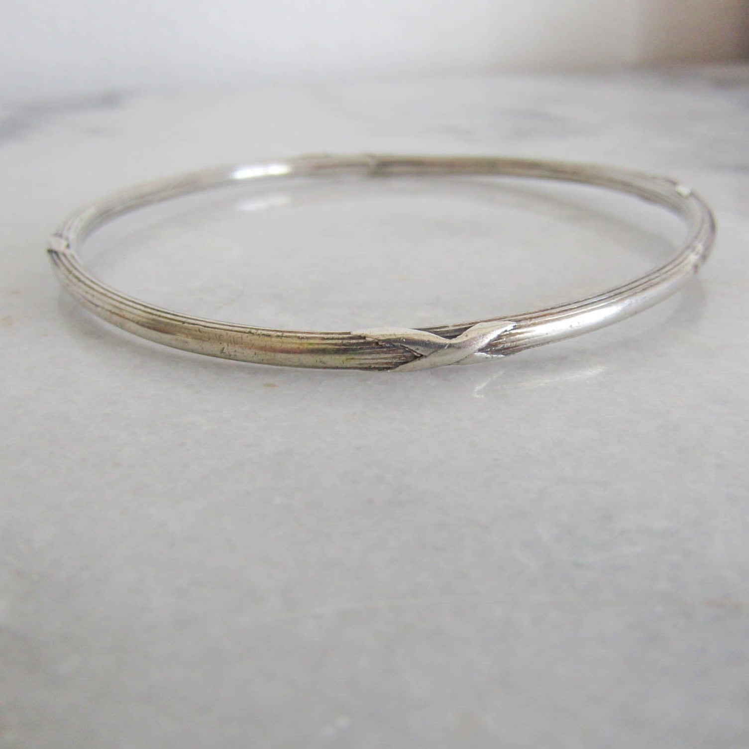 Antique Silver Reed and Crosshatch Bangle Bracelet