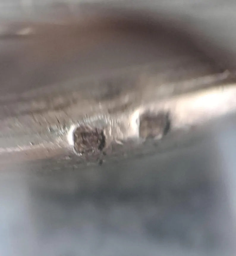 This simple reed and crosshatch bangle has a timeless charm. Crafted around 1900, it has a classic 'of the era' design with a ribbed exterior interspersed with small crossed ribbons. It has been worn with time, a likely favorite of it's previous owner. The bangle does not open and would likely be for someone with a smaller hand. It was a little large on my 6.25 circumference wrist. It is made of solid silver and has been hallmarked with a boar's head, guaranteeing at least 800 silver purity.