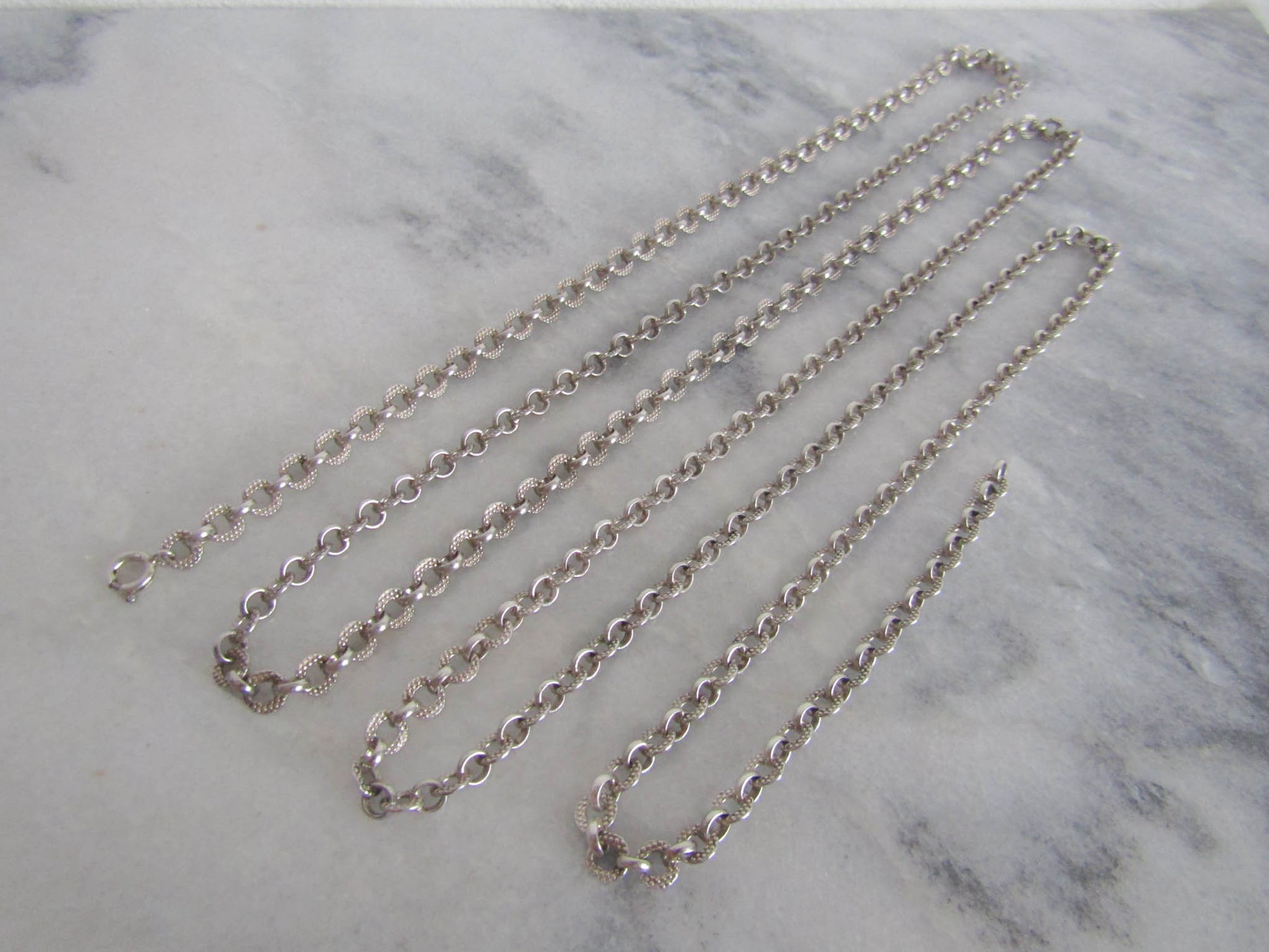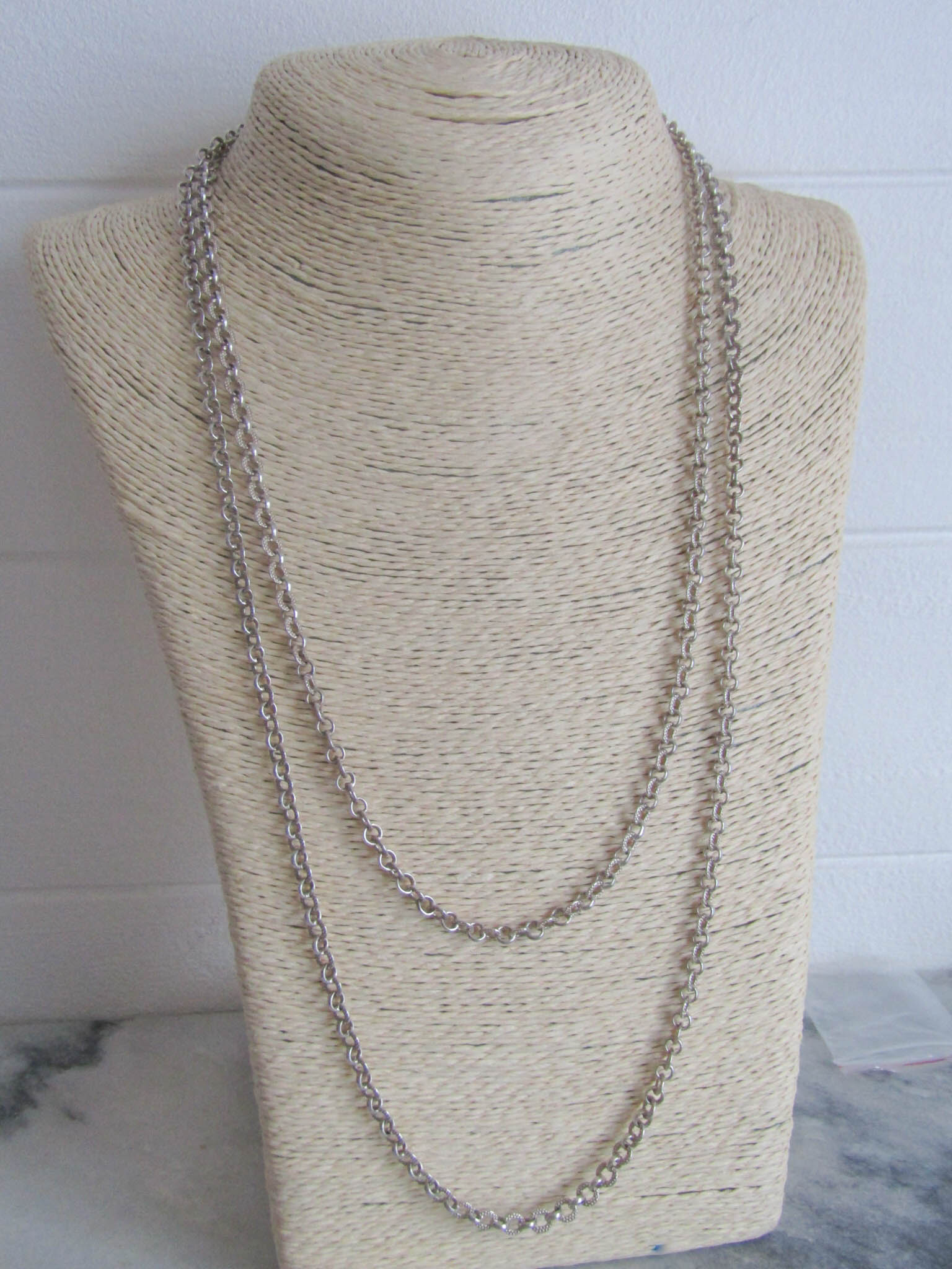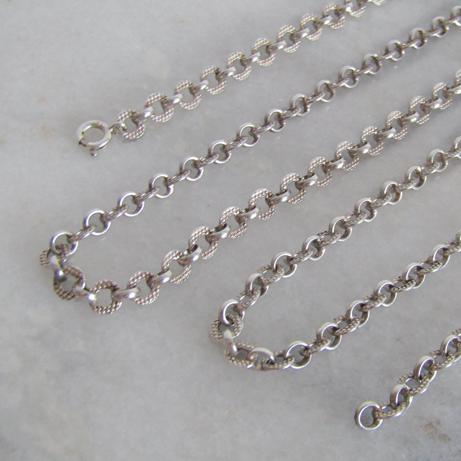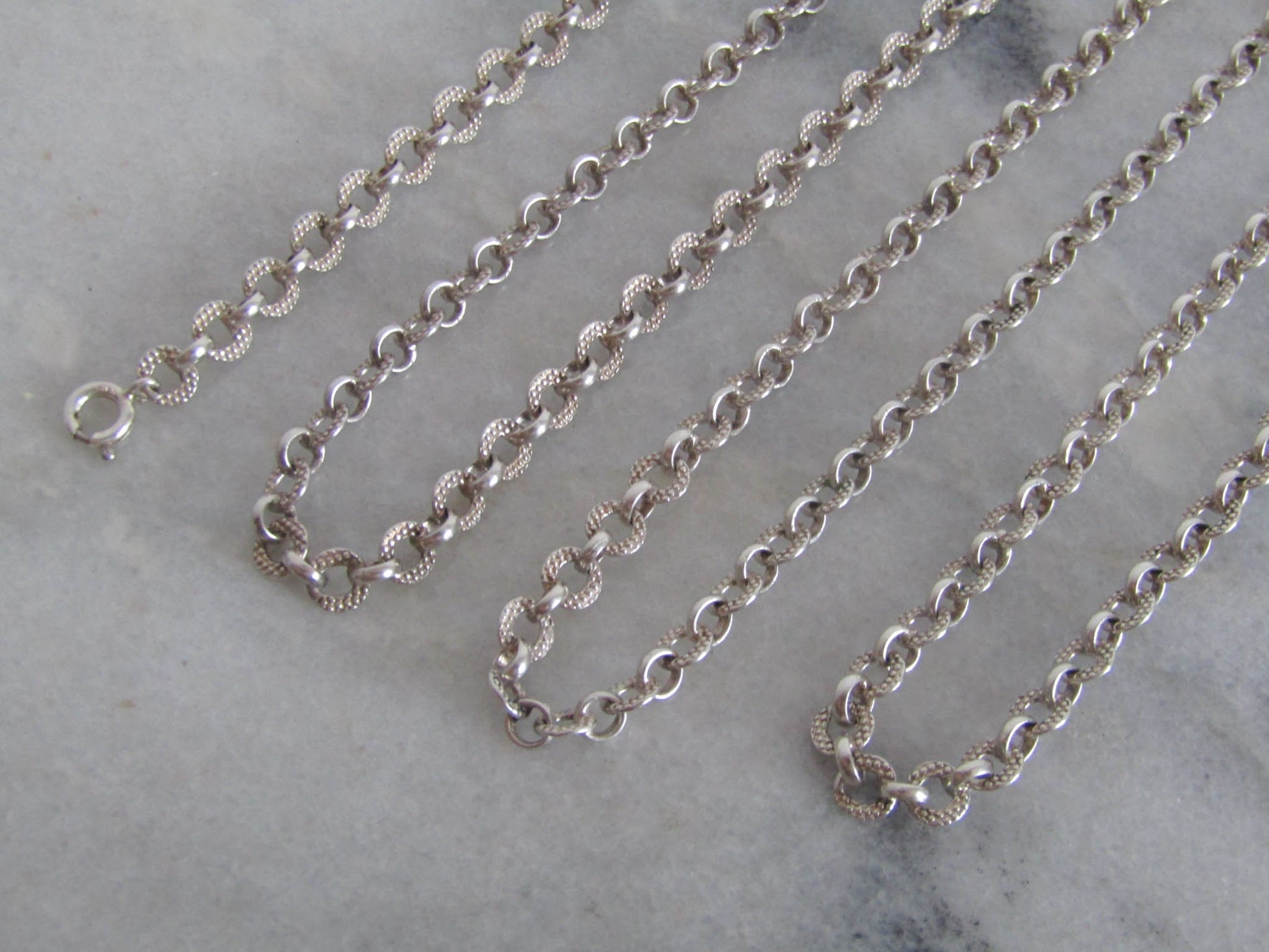 This absolutely stunning silver filigree chain is the work of a talented silversmith. Featuring thick and heavy textured rolo links which have been joined together, the chain can be worn doubled or tripled and is a versatile length. Textured links showcase the amount of work and craftsmanship that went into each individual link and the mastership to put it all together. The links are in excellent condition and the necklace is not but has been tested for at least 800 minimum silver. At it's full length it measures 124 cm or 48.8 inches.