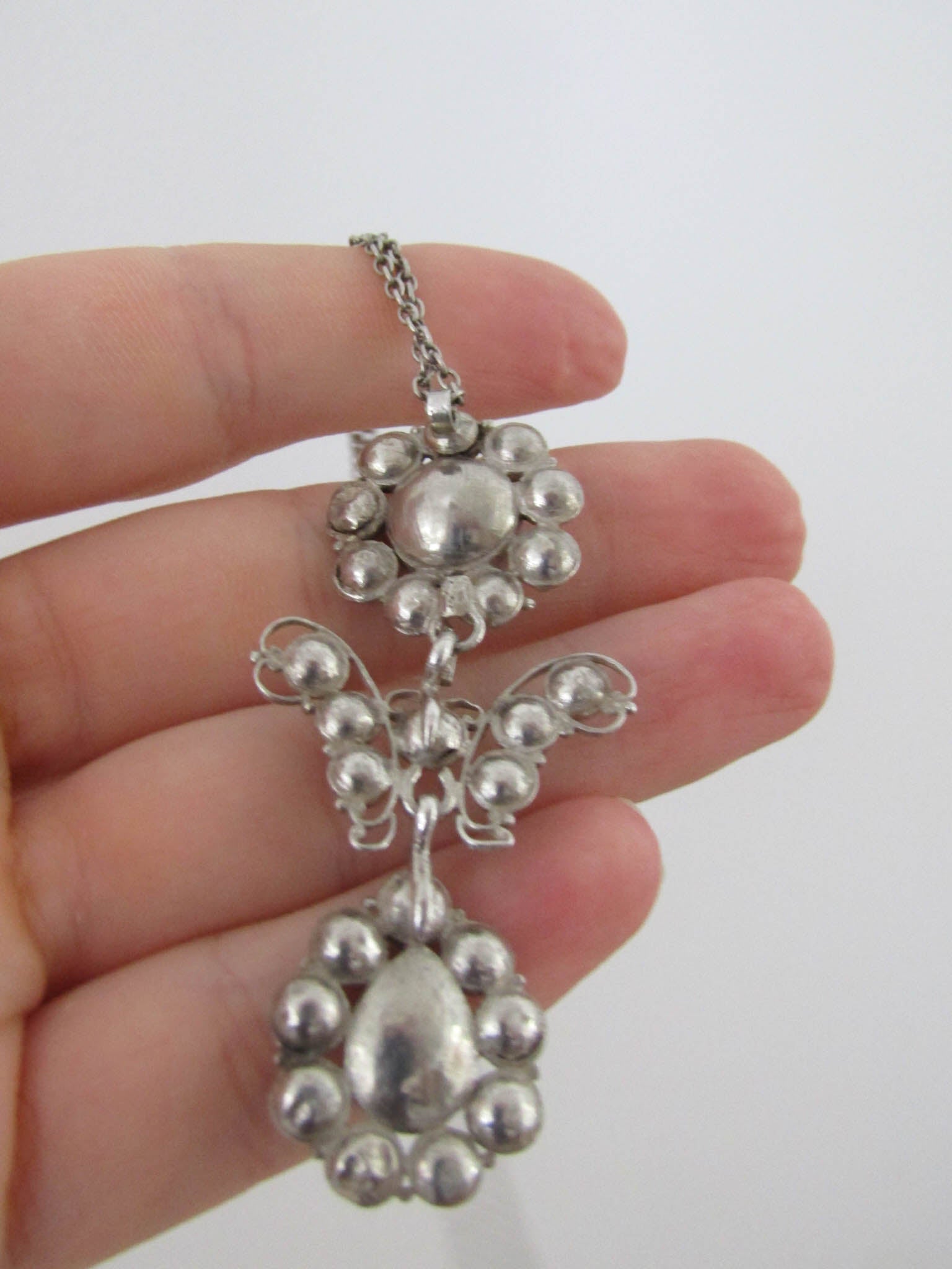 GEORGIAN Black Dot Paste Pendant c. 1800, Antique Butterfly Paste Pendant