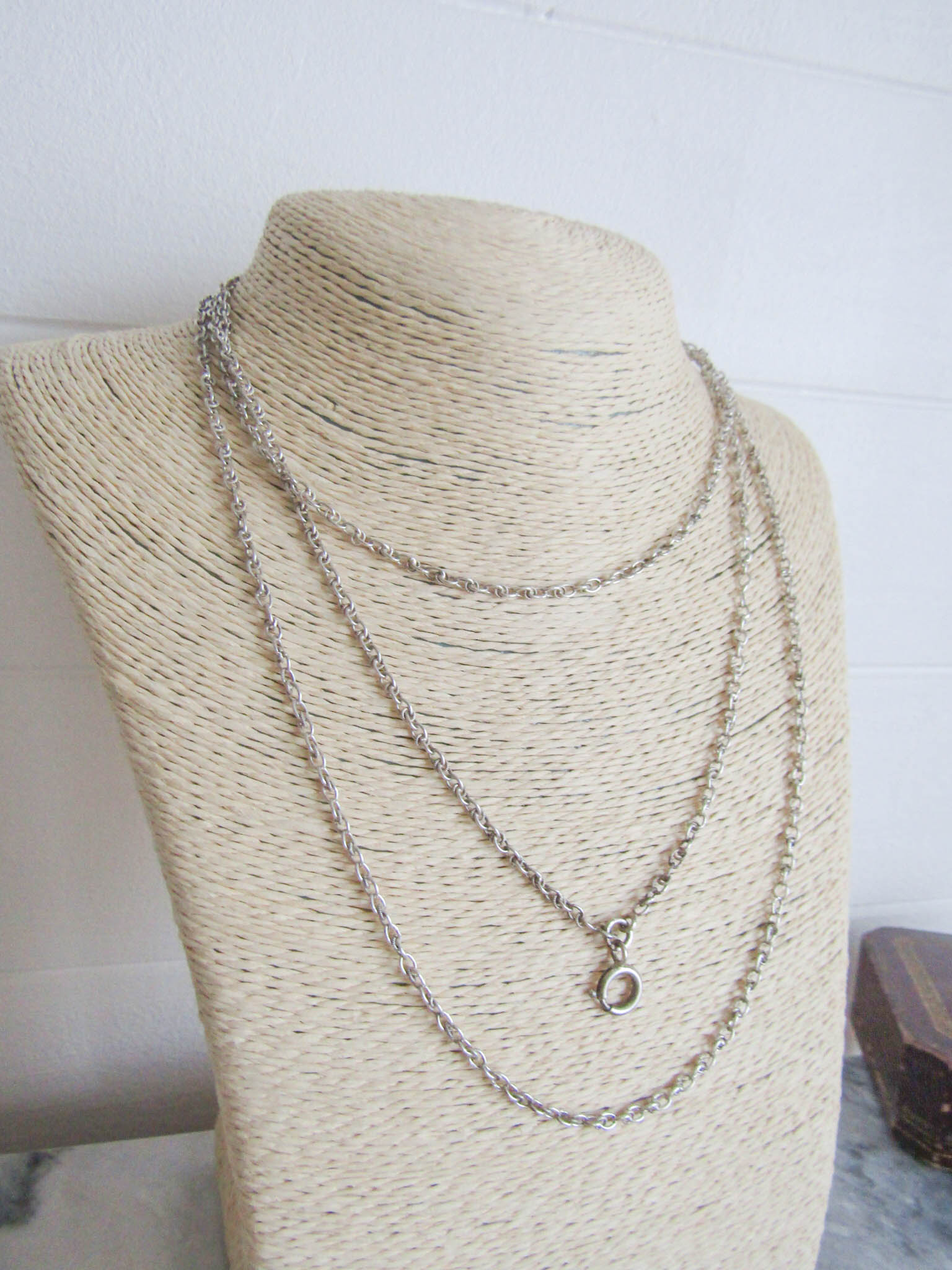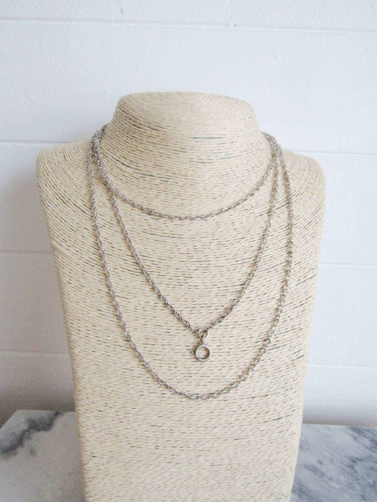 Vintage Art Deco Silver Long Guard Chain