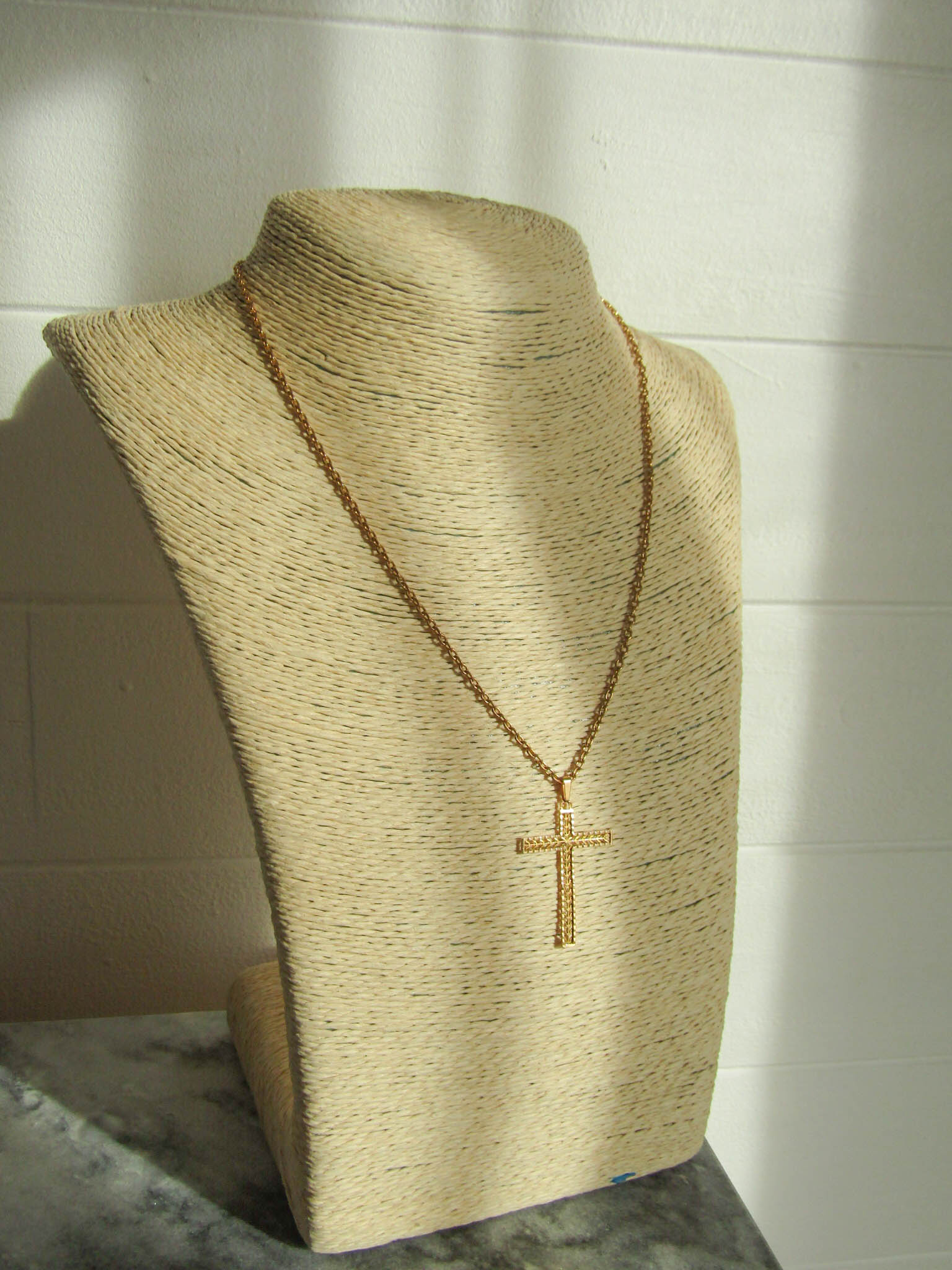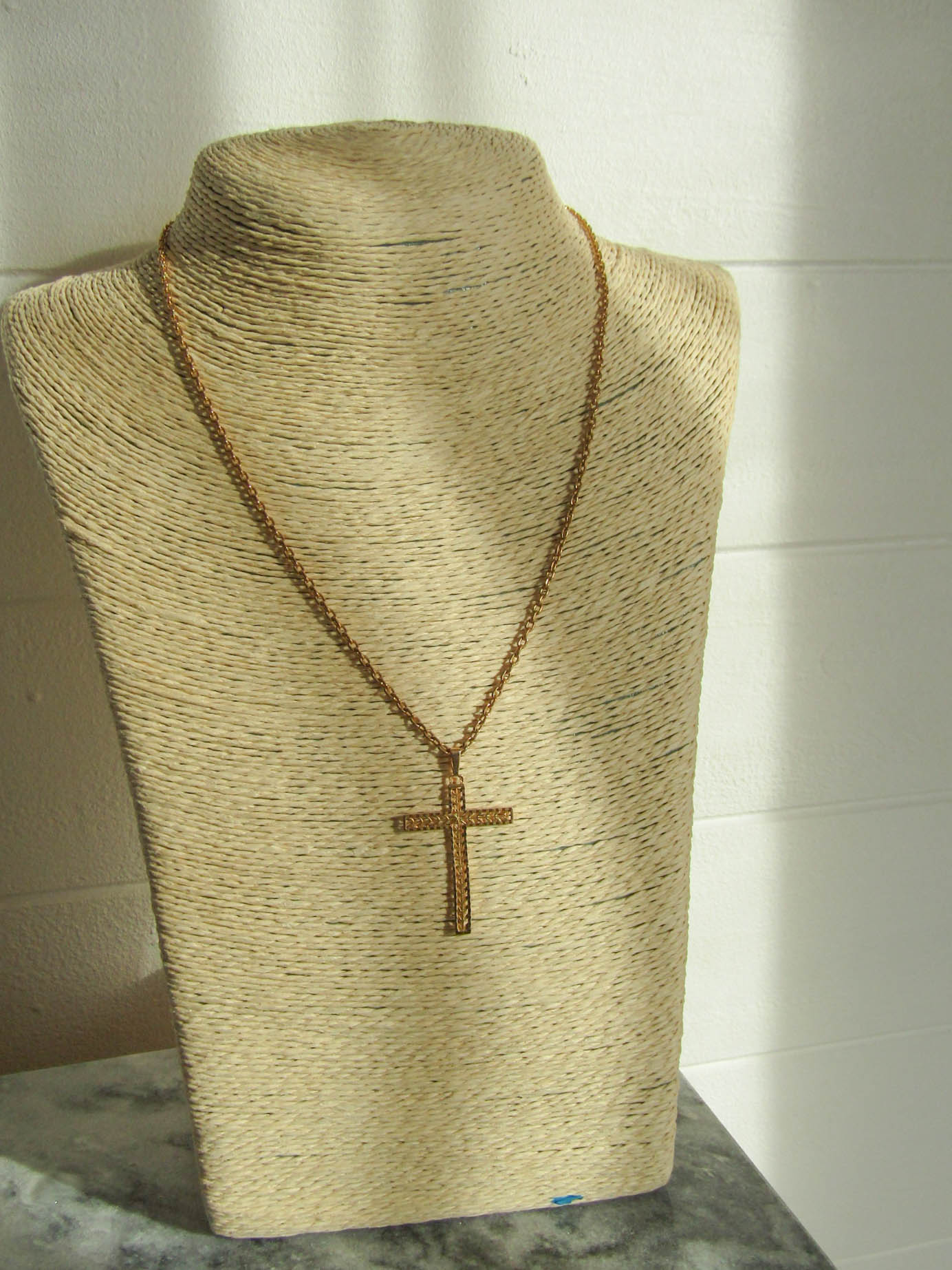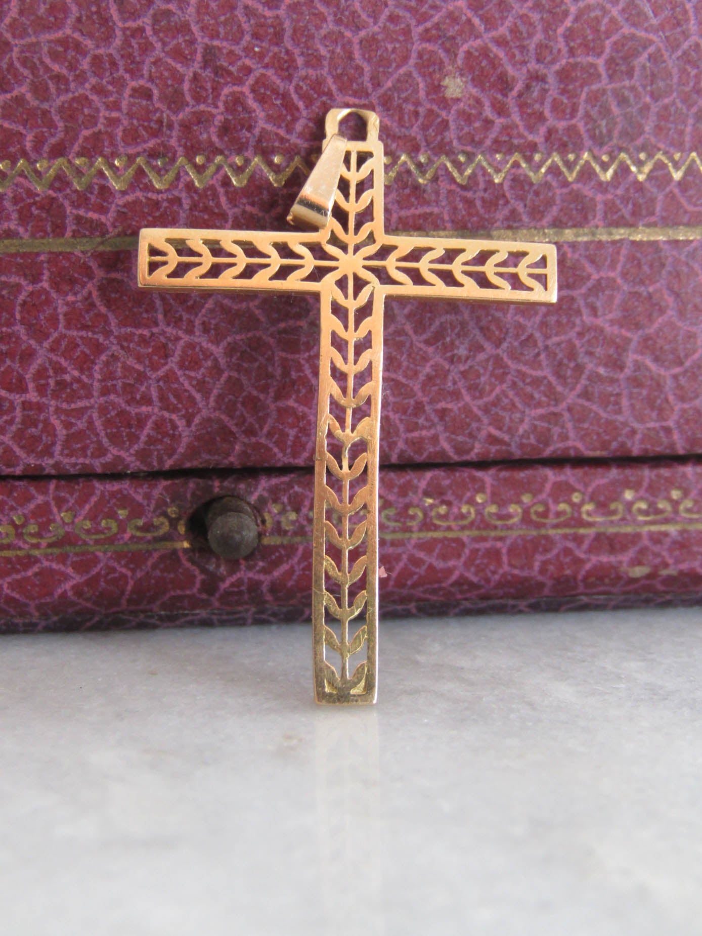 Vintage French Cross Pendant, 1950s Baptism Gift